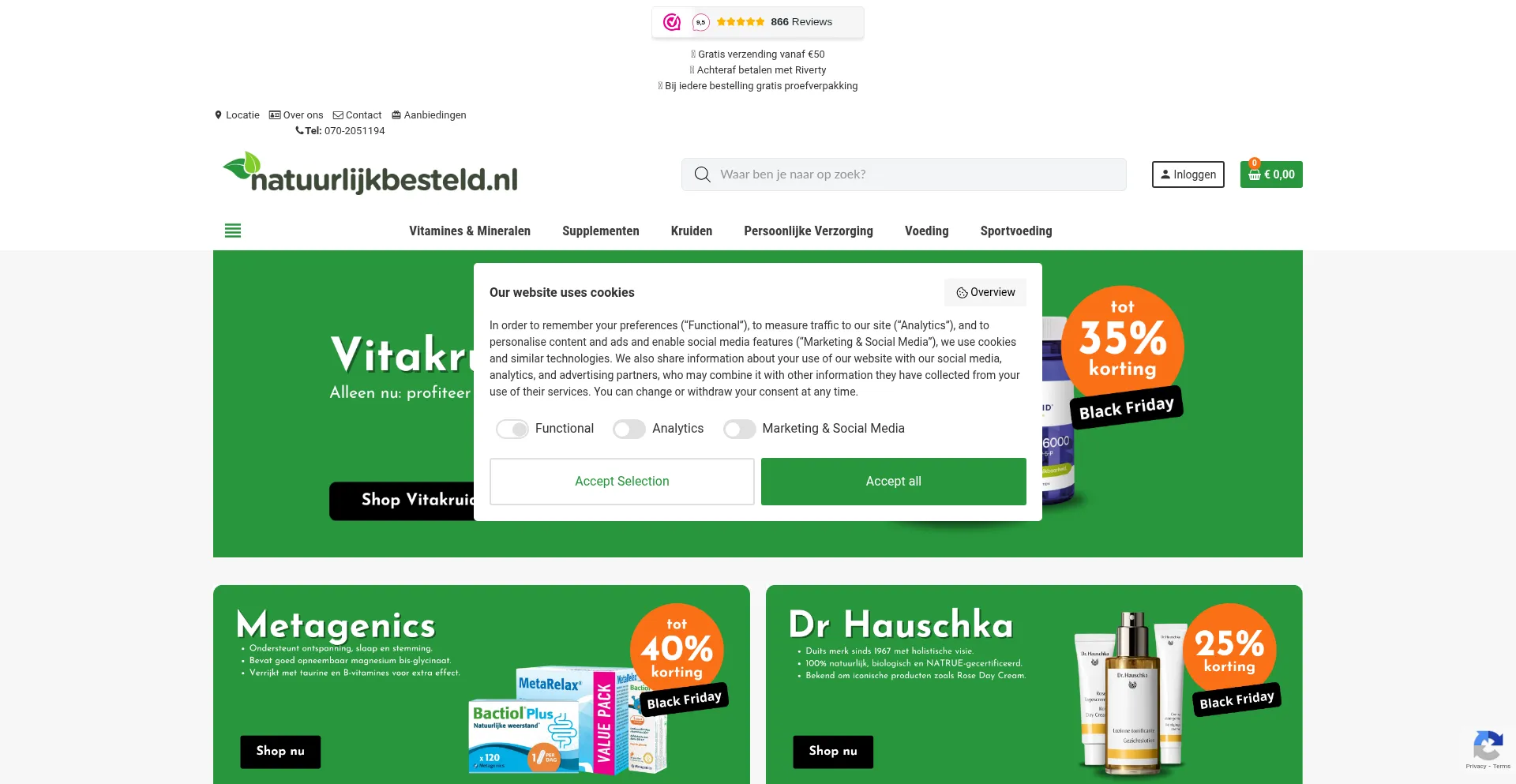 The website implements cookie consent mechanisms in compliance with privacy regulations such as GDPR or CCPA. This demonstrates that natuurlijkbesteld.nl adheres to data protection standards and provides users with control over personal data collection practices.
