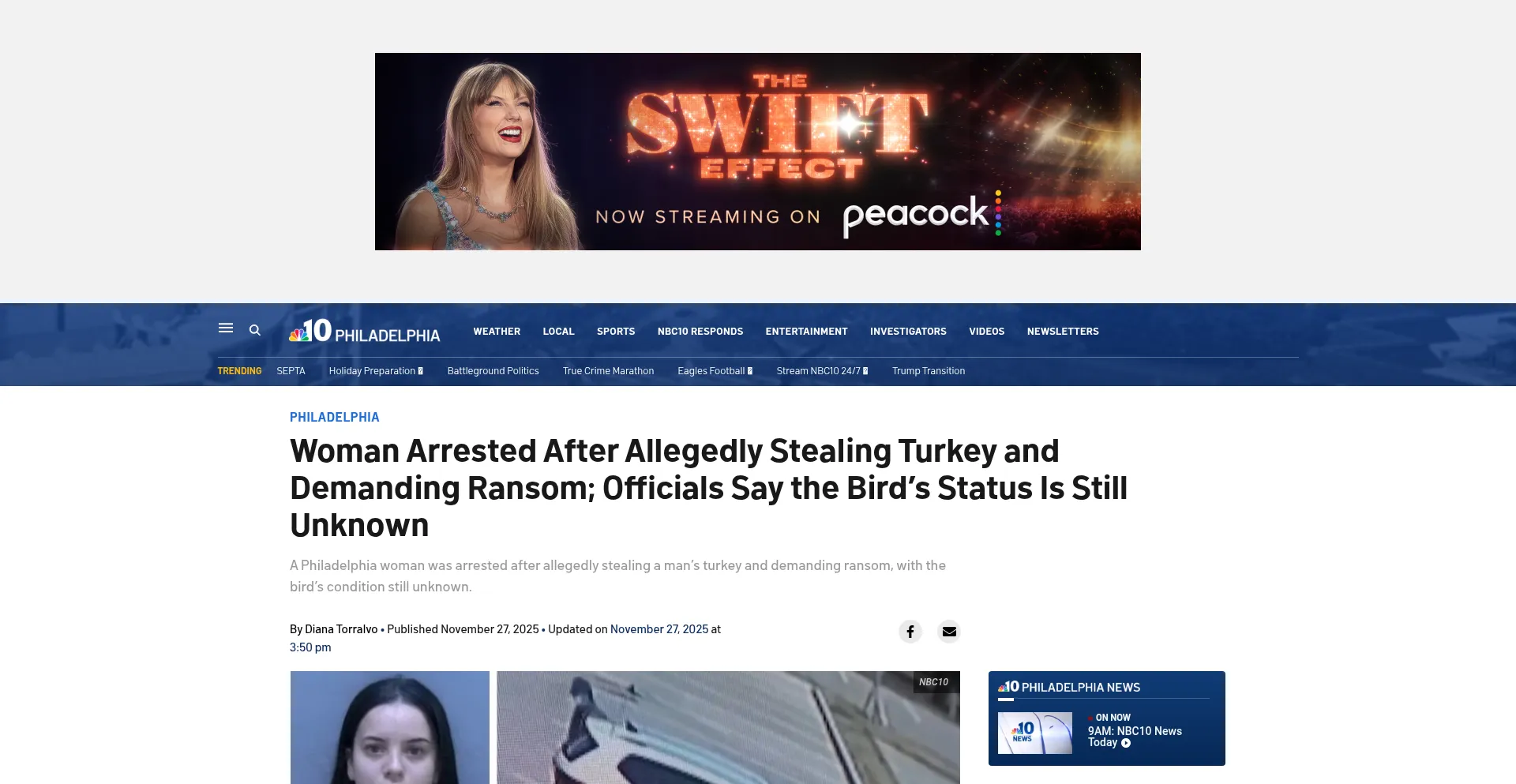 Woman Arrested After Allegedly Stealing Turkey and Demanding Ransom; Officials Say the Bird’s Status Is Still Unknown