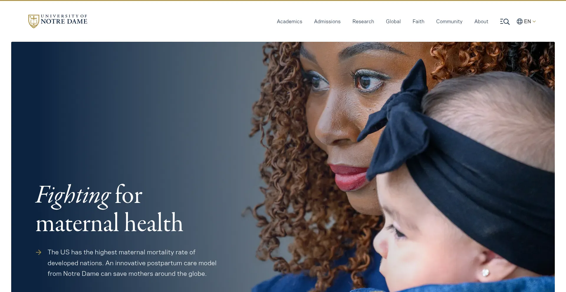 The University of Notre Dame is a private research university inspired by its Catholic character to be a powerful force for good in the world.