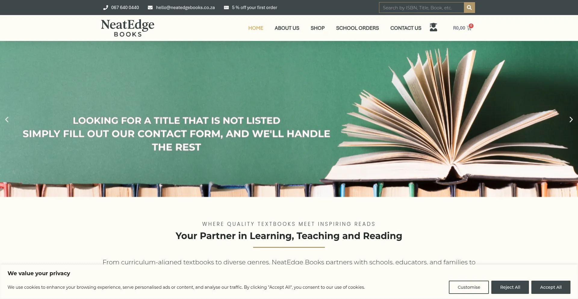 The website implements cookie consent mechanisms in compliance with privacy regulations such as GDPR or CCPA. This demonstrates that neatedgebooks.co.za adheres to data protection standards and provides users with control over personal data collection practices.