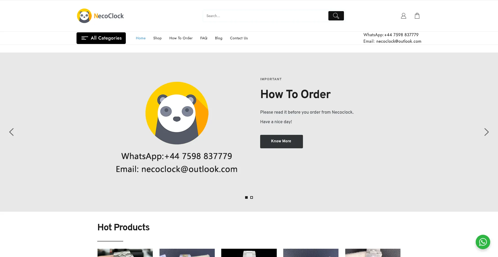 Analysis indicates that necoclock.com operates as an e-commerce platform facilitating online transactions for goods or services. The website implements shopping cart functionality, payment processing systems, and product catalog features typical of commercial retail operations.