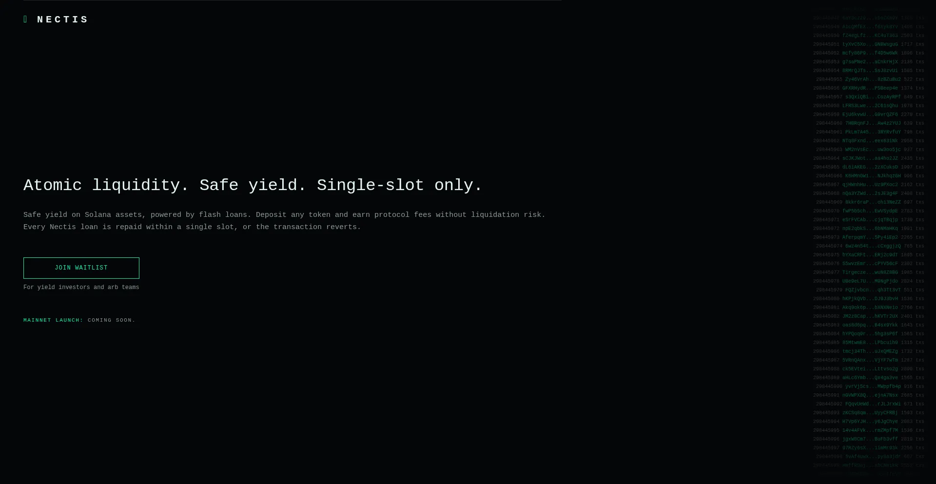 Nectis — Atomic liquidity. Safe yield. Single-slot only.