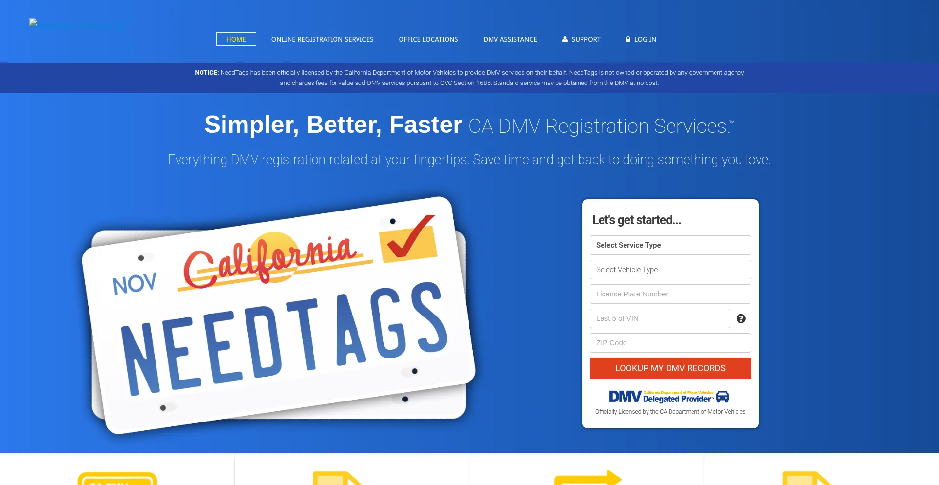 NeedTags: Simpler, Better, Faster CA DMV Registration™