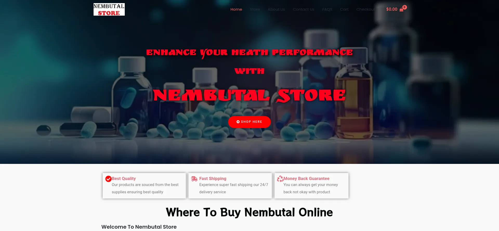Analysis indicates that nembutalstore.co operates as an e-commerce platform facilitating online transactions for goods or services. The website implements shopping cart functionality, payment processing systems, and product catalog features typical of commercial retail operations.