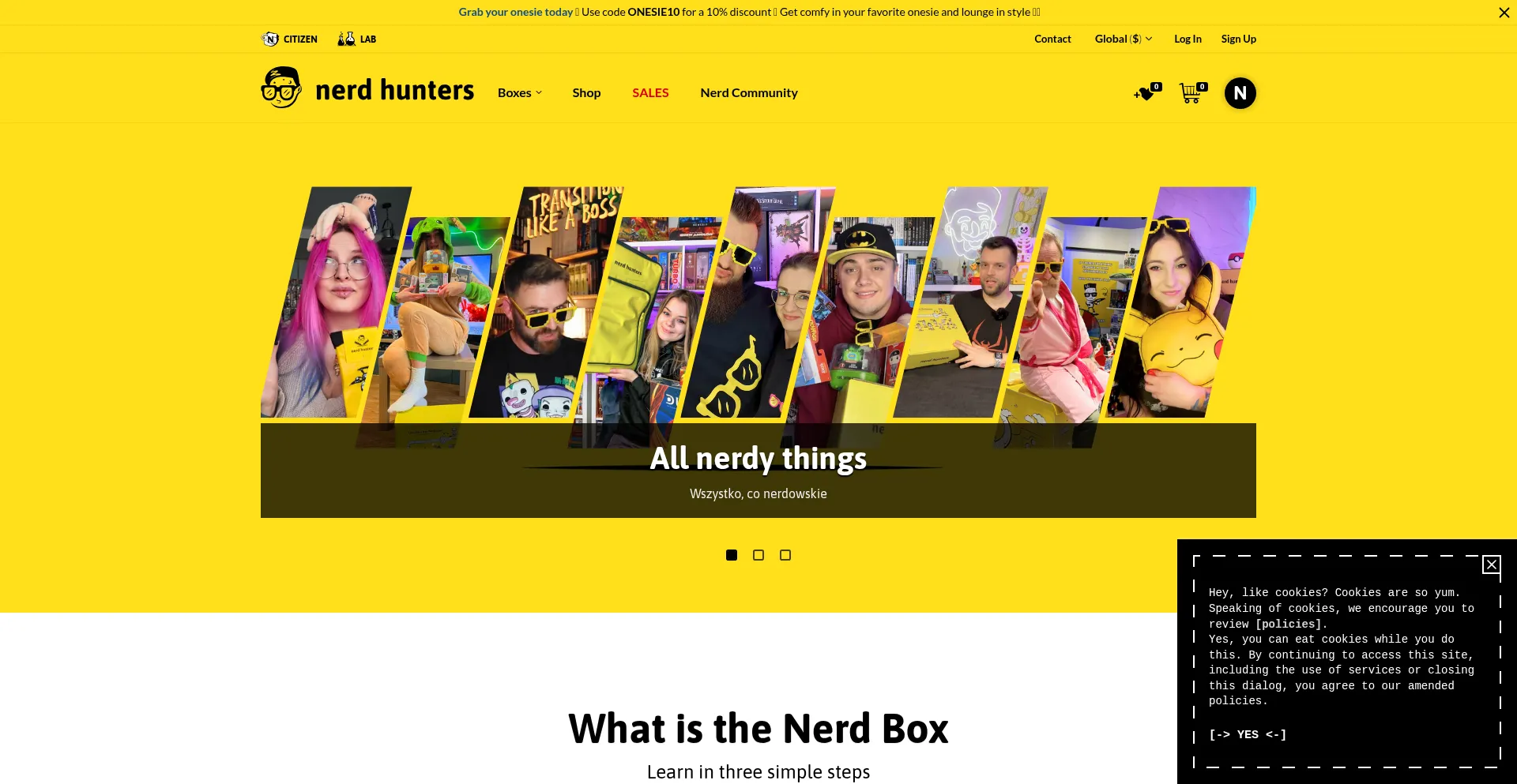 Analysis indicates that nerdhunters.com operates as an e-commerce platform facilitating online transactions for goods or services. The website implements shopping cart functionality, payment processing systems, and product catalog features typical of commercial retail operations.