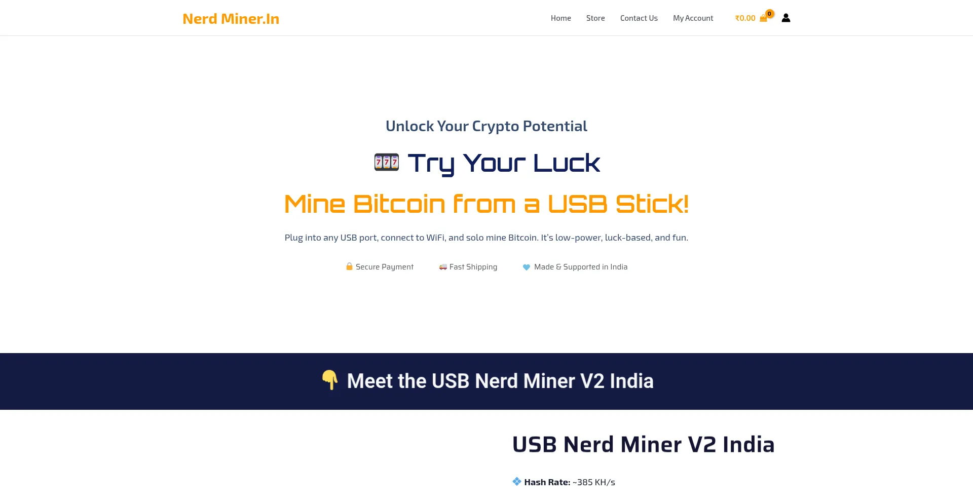 Analysis indicates that nerdminer.in operates as an e-commerce platform facilitating online transactions for goods or services. The website implements shopping cart functionality, payment processing systems, and product catalog features typical of commercial retail operations.