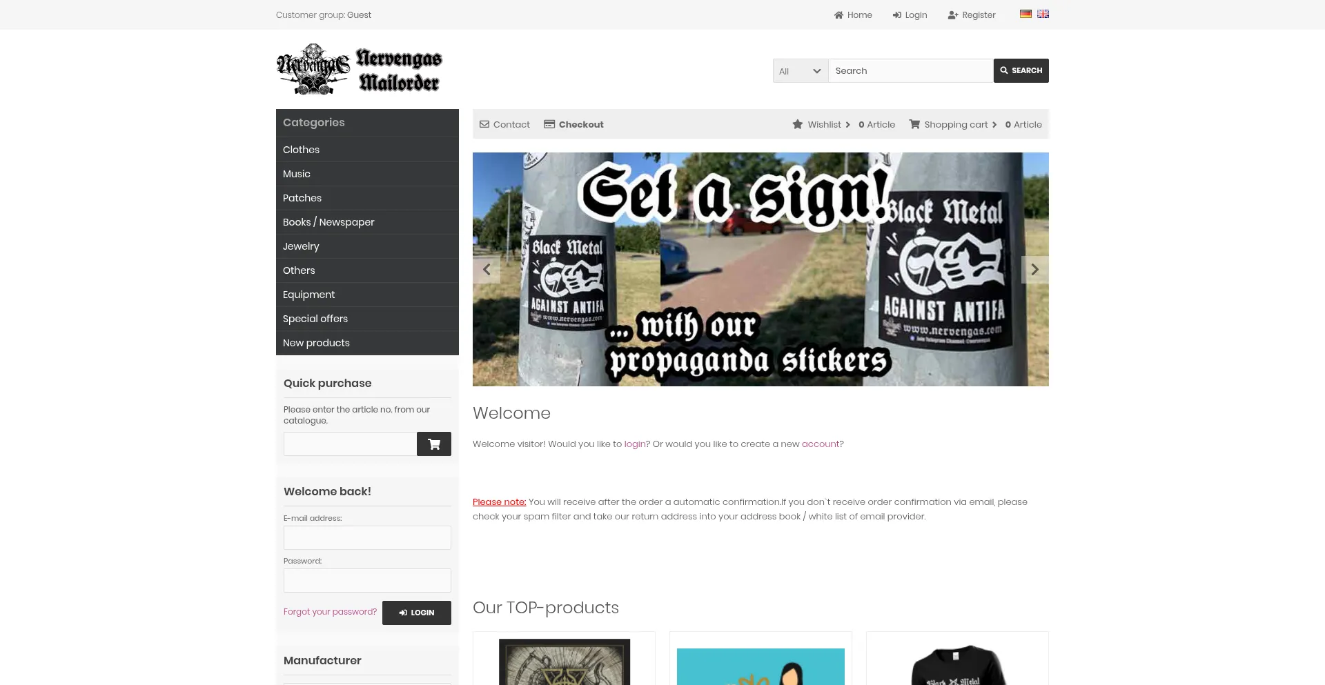 Nervengas Versand - Pure Untergrund Black Metal Mailorder | Der Underground Black Metal Versand von der Szene fÃŒr die Szene. Hier gibt es Black Metal, ...