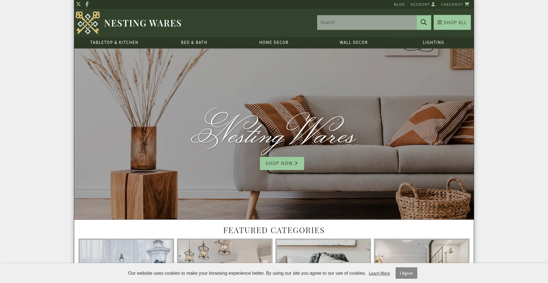 Analysis indicates that nestingwares.com operates as an e-commerce platform facilitating online transactions for goods or services. The website implements shopping cart functionality, payment processing systems, and product catalog features typical of commercial retail operations.