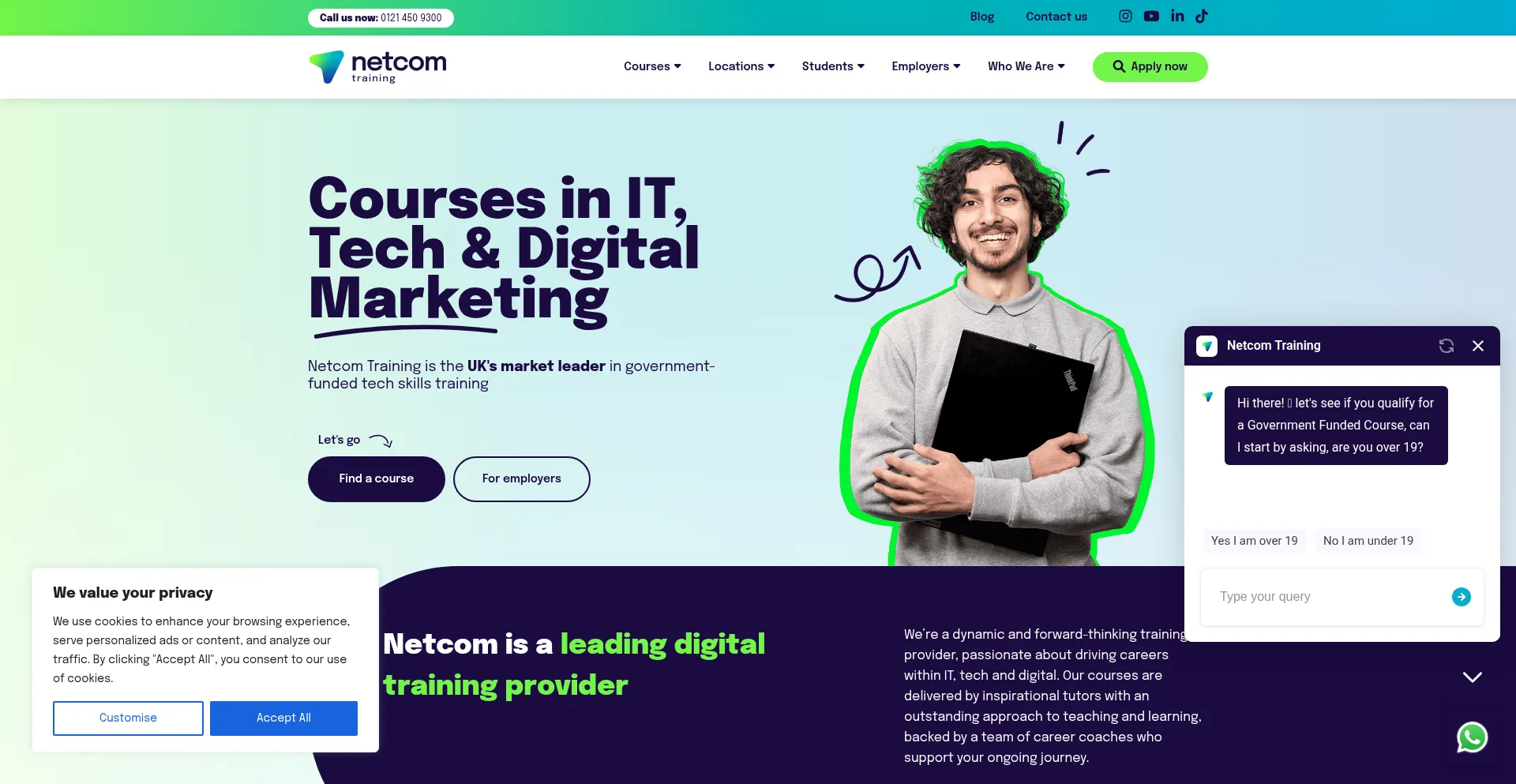 The website implements cookie consent mechanisms in compliance with privacy regulations such as GDPR or CCPA. This demonstrates that netcomtraining.co.uk adheres to data protection standards and provides users with control over personal data collection practices.