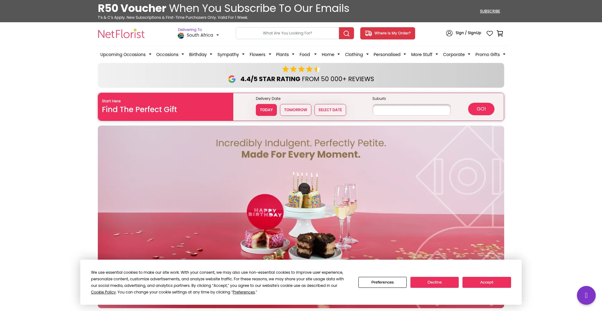 The website implements cookie consent mechanisms in compliance with privacy regulations such as GDPR or CCPA. This demonstrates that netflorist.co.za adheres to data protection standards and provides users with control over personal data collection practices.