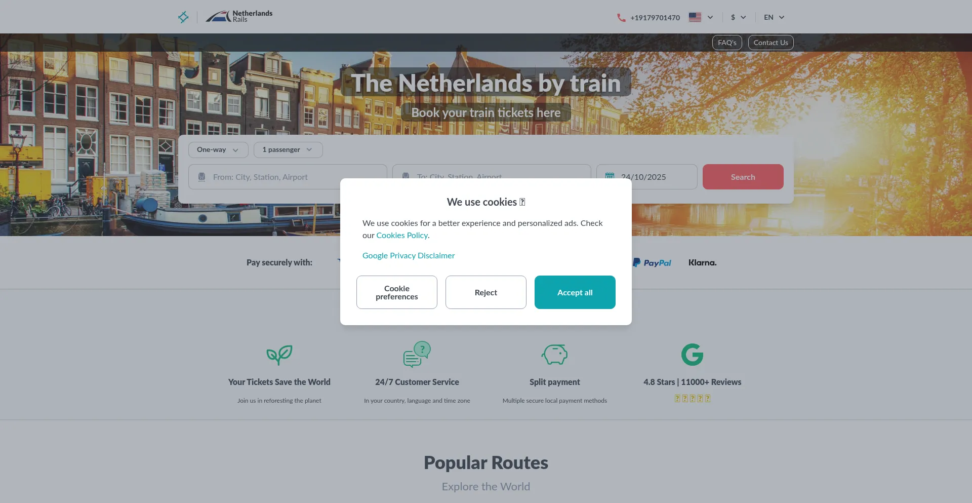 The website implements cookie consent mechanisms in compliance with privacy regulations such as GDPR or CCPA. This demonstrates that netherlandsrails.com adheres to data protection standards and provides users with control over personal data collection practices.