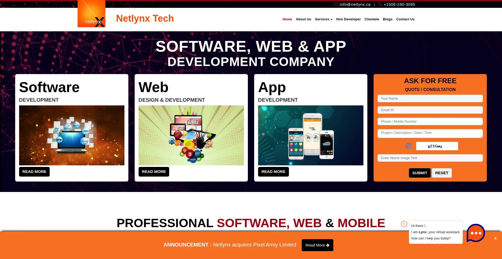 Netlynx Tech a complete Website Design company Fredericton, NB, Canada, for quality web design and development Canada, ecommerce, ASP.NET application Canada, Search Engine Optim...