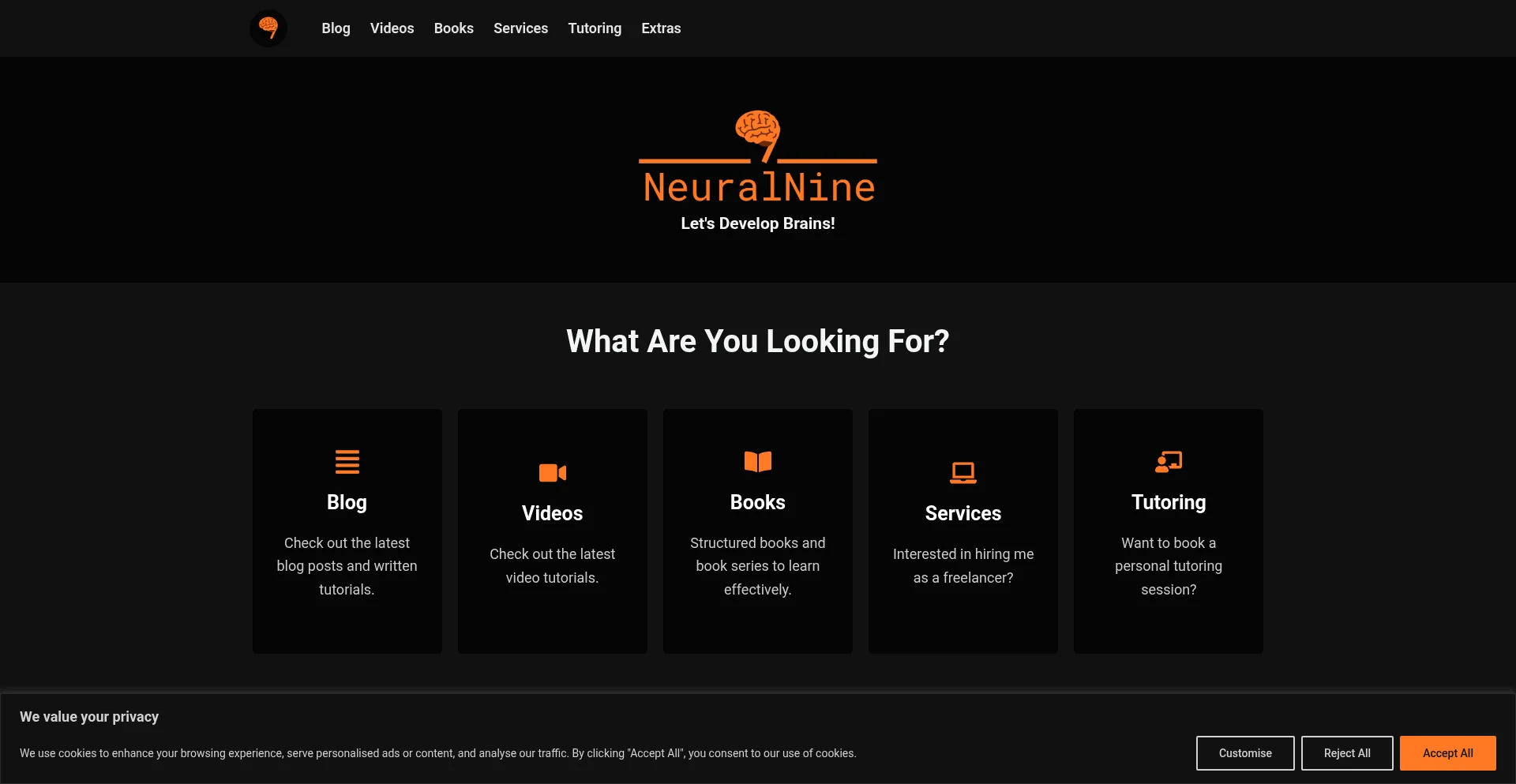The website implements cookie consent mechanisms in compliance with privacy regulations such as GDPR or CCPA. This demonstrates that neuralnine.com adheres to data protection standards and provides users with control over personal data collection practices.