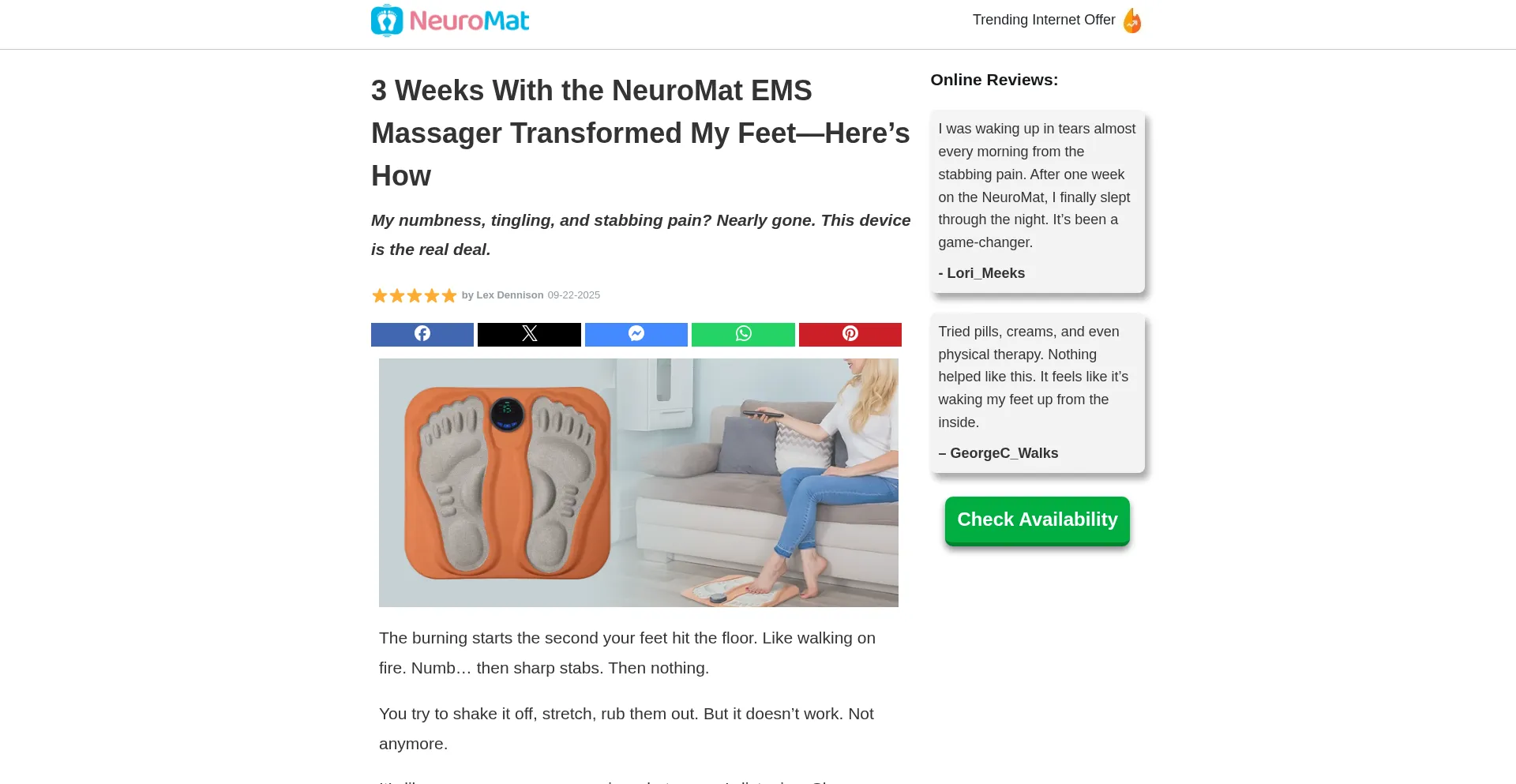 Tired of burning, stabbing foot pain that keeps you up at night? NeuroMat EMS Massager targets nerve pain and brings fast relief.