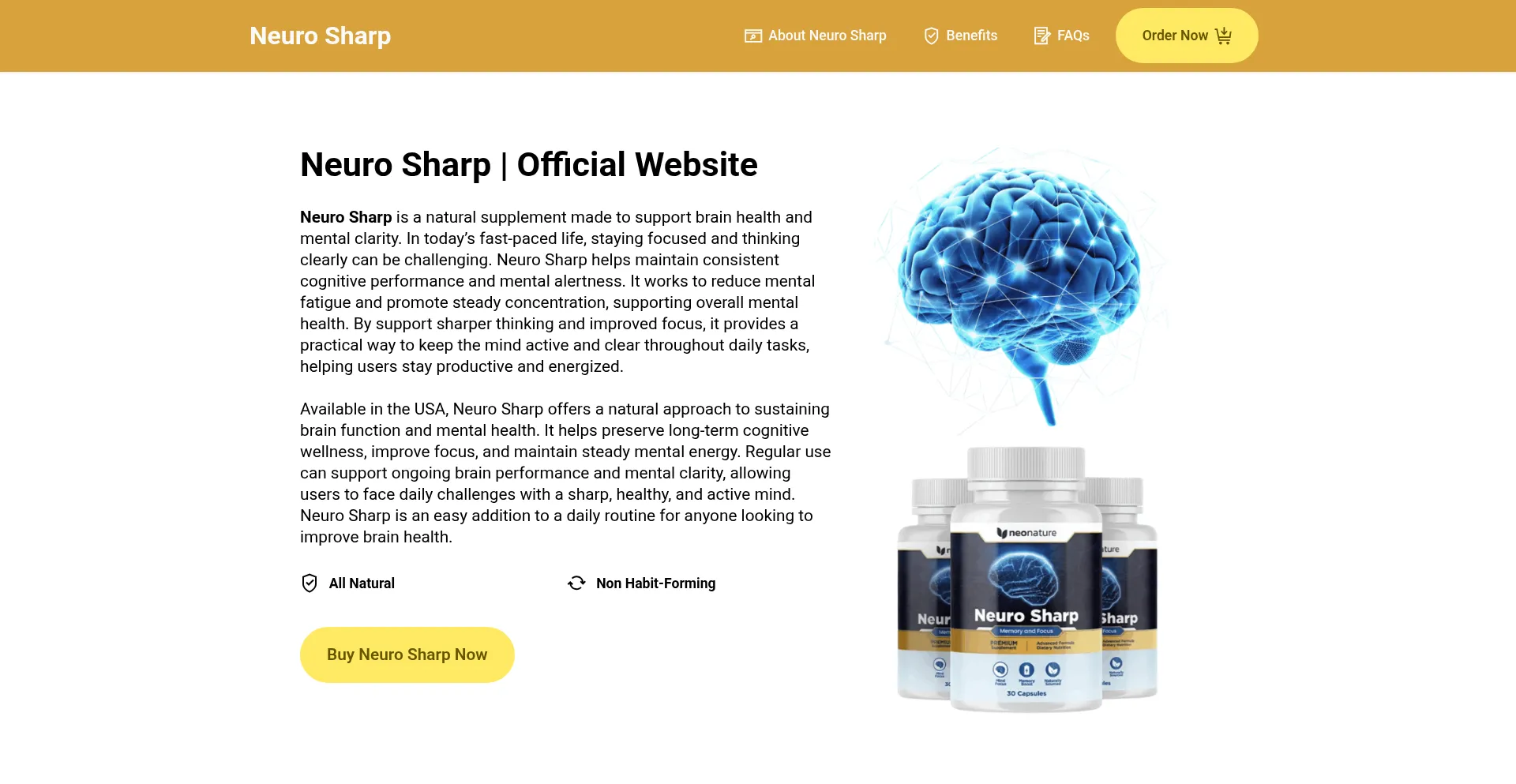Neuro Sharp is a brain health supplement that supports memory, focus, cognitive function, and mental health for improved clarity and daily mental performance.