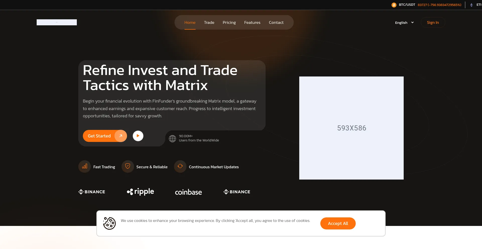Cryptocurrency Financial Service Registration Form Cookie Consent Bootstrap Framework Web Application AI-generated Text Young Domain Low Scamadviser Score Blacklisted