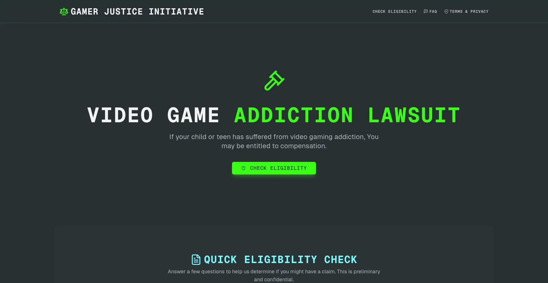 If you are under 25 and have suffered medically from video game addiction, you may be eligible for compensation. Check your eligibility for the lawsuit.
