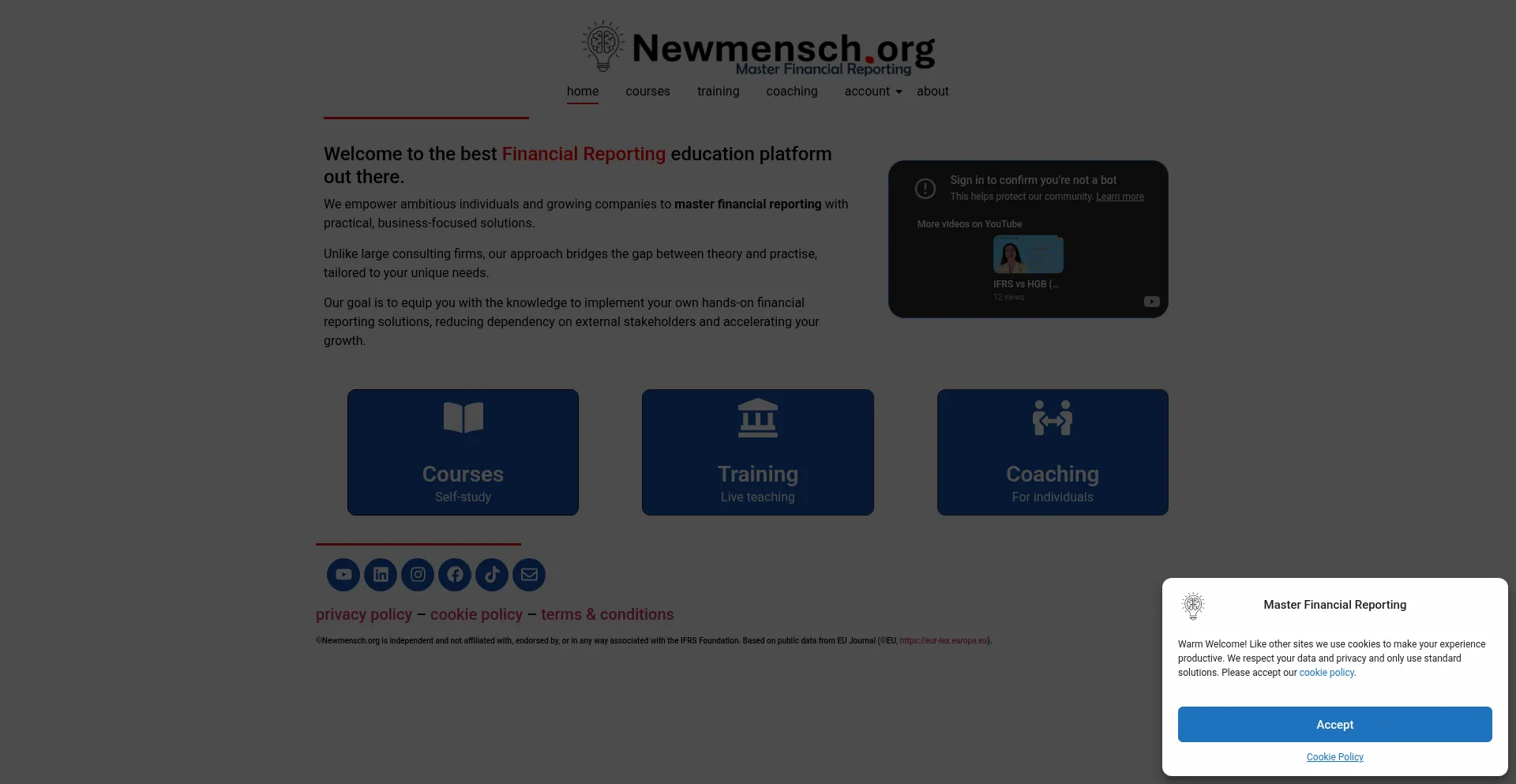 The website implements cookie consent mechanisms in compliance with privacy regulations such as GDPR or CCPA. This demonstrates that newmensch.org adheres to data protection standards and provides users with control over personal data collection practices.