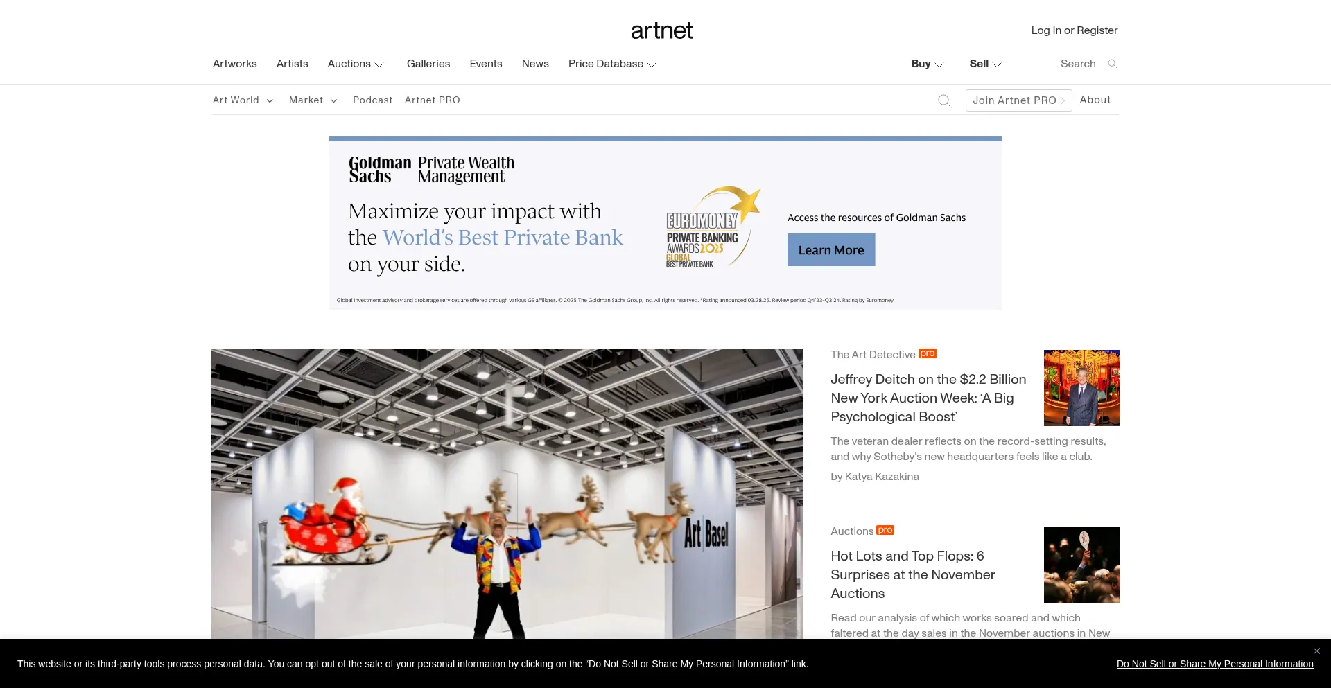 The website implements cookie consent mechanisms in compliance with privacy regulations such as GDPR or CCPA. This demonstrates that news.artnet.com adheres to data protection standards and provides users with control over personal data collection practices.