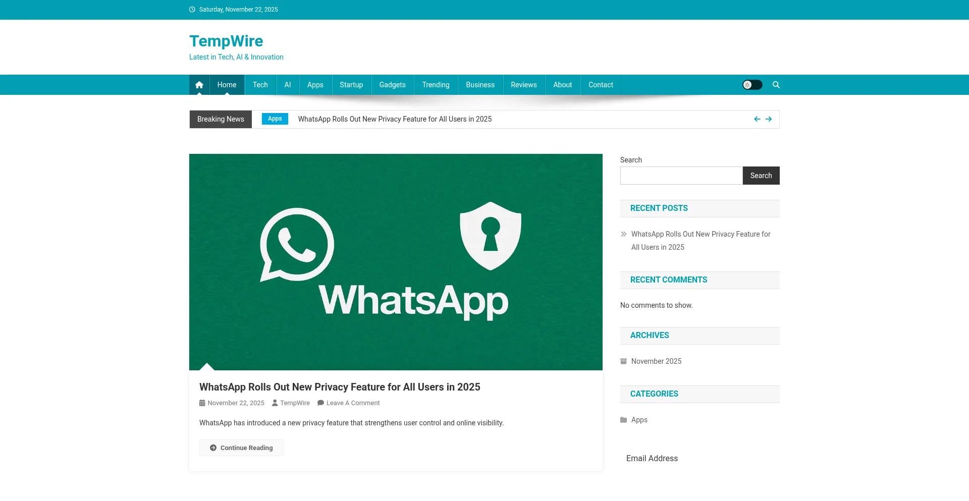 Our analyzer determines that website news.tempemailnow.com is using WordPress CMS. WordPress is the most popular content management system, powering over 43% of websites globally.