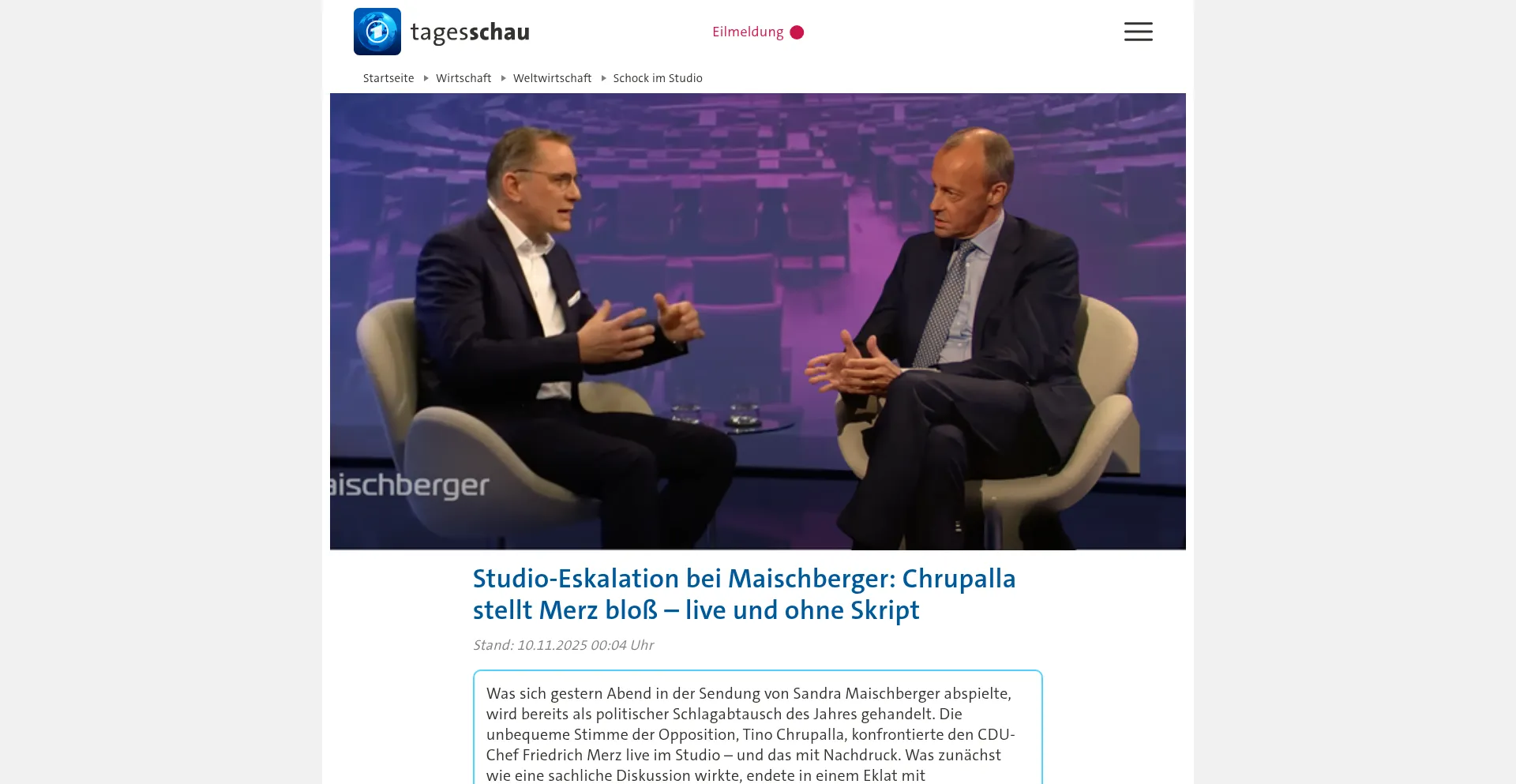 Studio-Eskalation bei Maischberger: Chrupalla stellt Merz bloß – live und ohne Skript | tagesschau.de