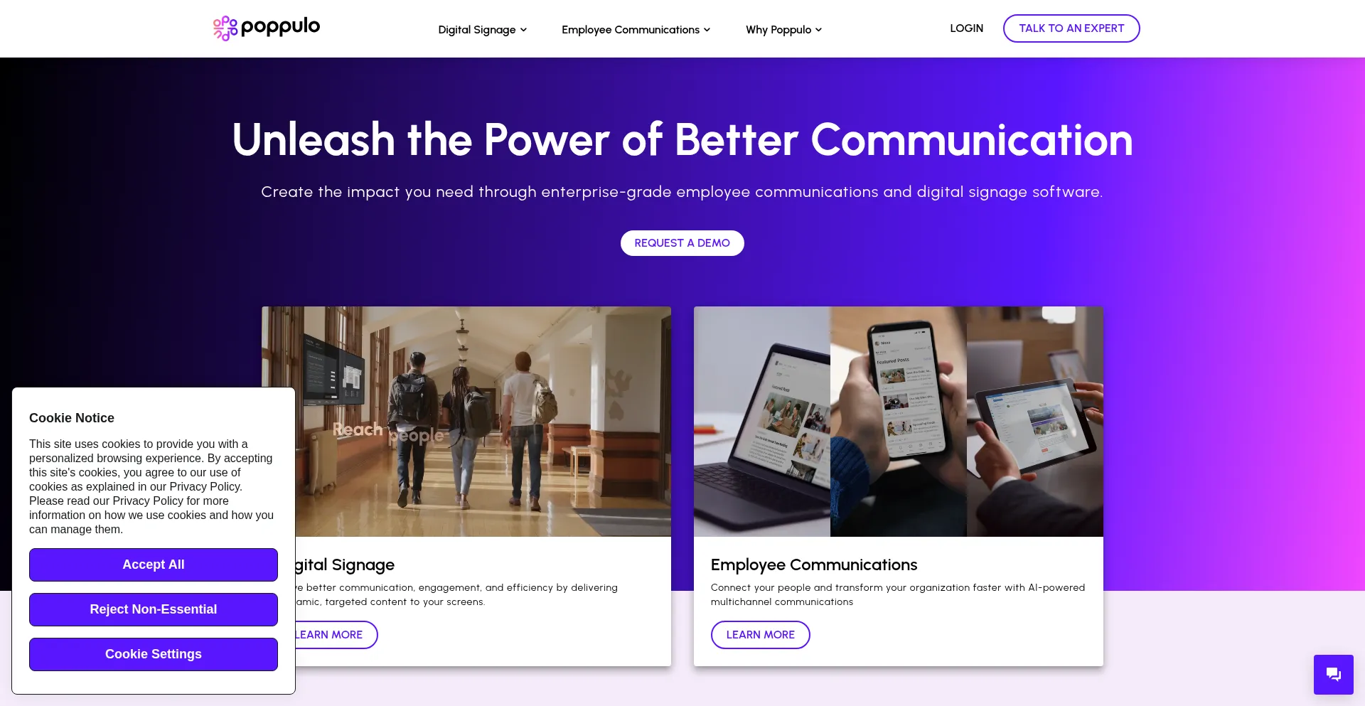 Enhance your customer and employee communications experience with Poppulo's omni-channel solutions, including email, digital signage, mobile apps and more.