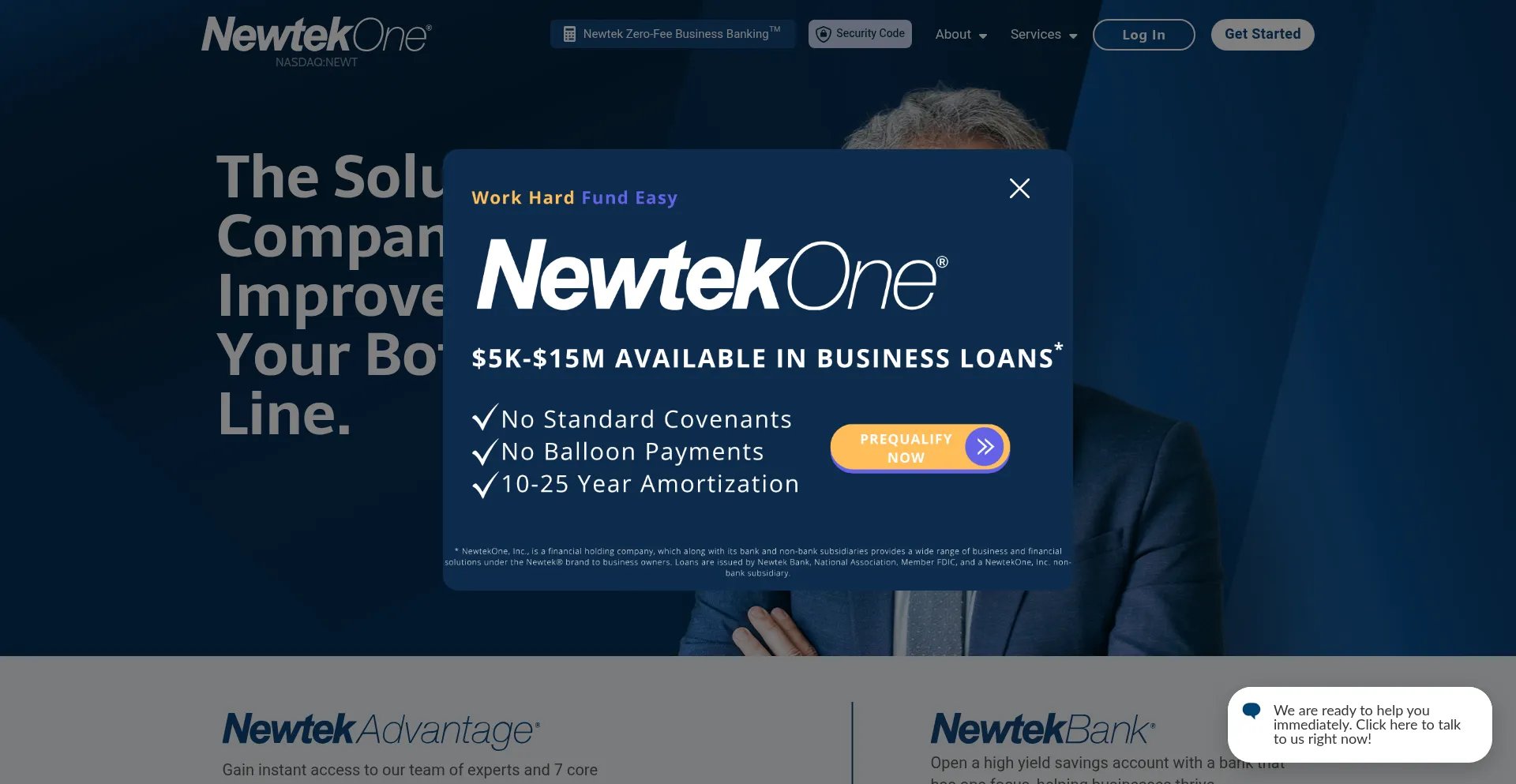 libs.salemove.com consentcdn.cookiebot.com img.en25.com www.newtekbank.com api.glia.com googleads.g.doubleclick.net www.newtekadvantage.com www.googletagmanager.com www.google-analytics.com consent.cookiebot.com +13 more