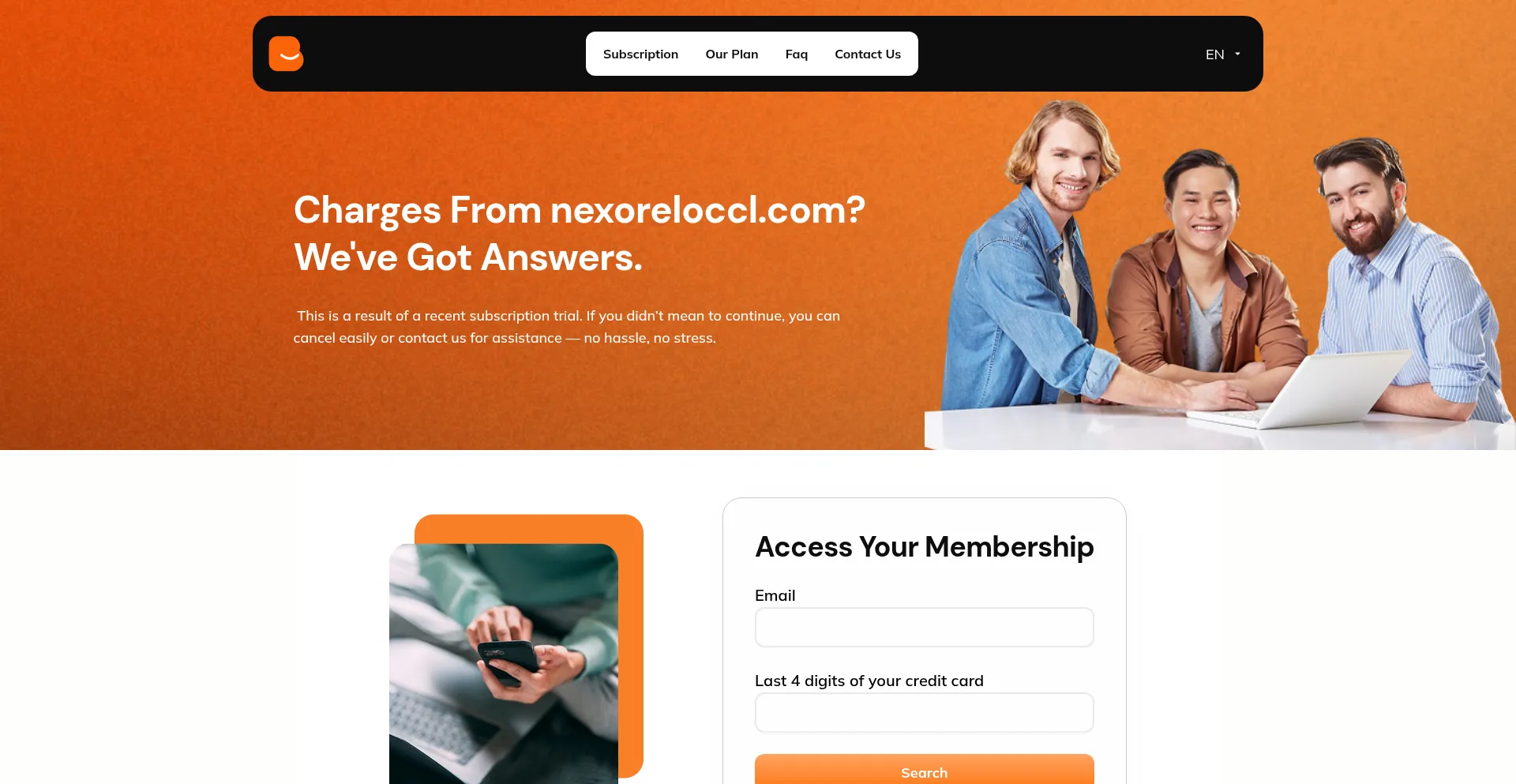The website contains dedicated sections addressing payment disputes, subscription management, chargeback procedures, refund policies, and other financial transaction concerns, indicating established billing operations.