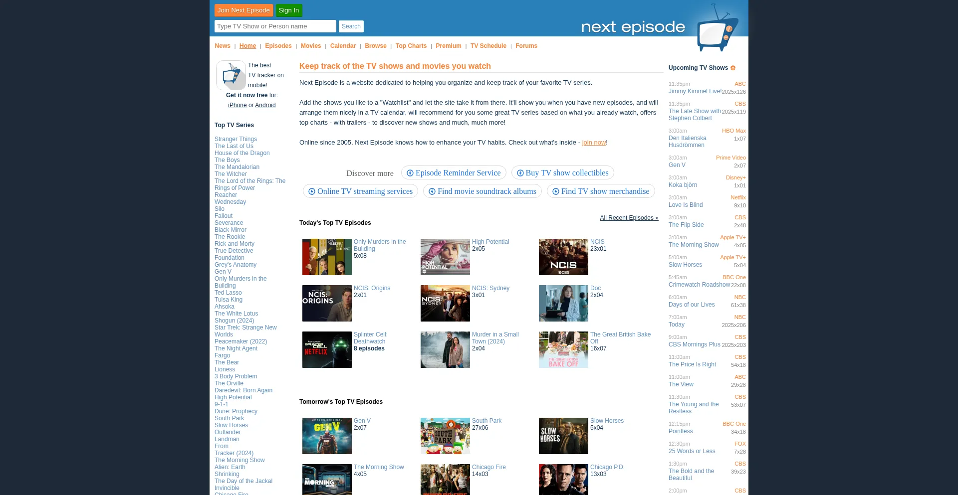 Add your favorite TV shows to a Watchlist and let the site keep track for you: It'll show new episodes and will organize them in a TV calendar, will recommend for you some great...