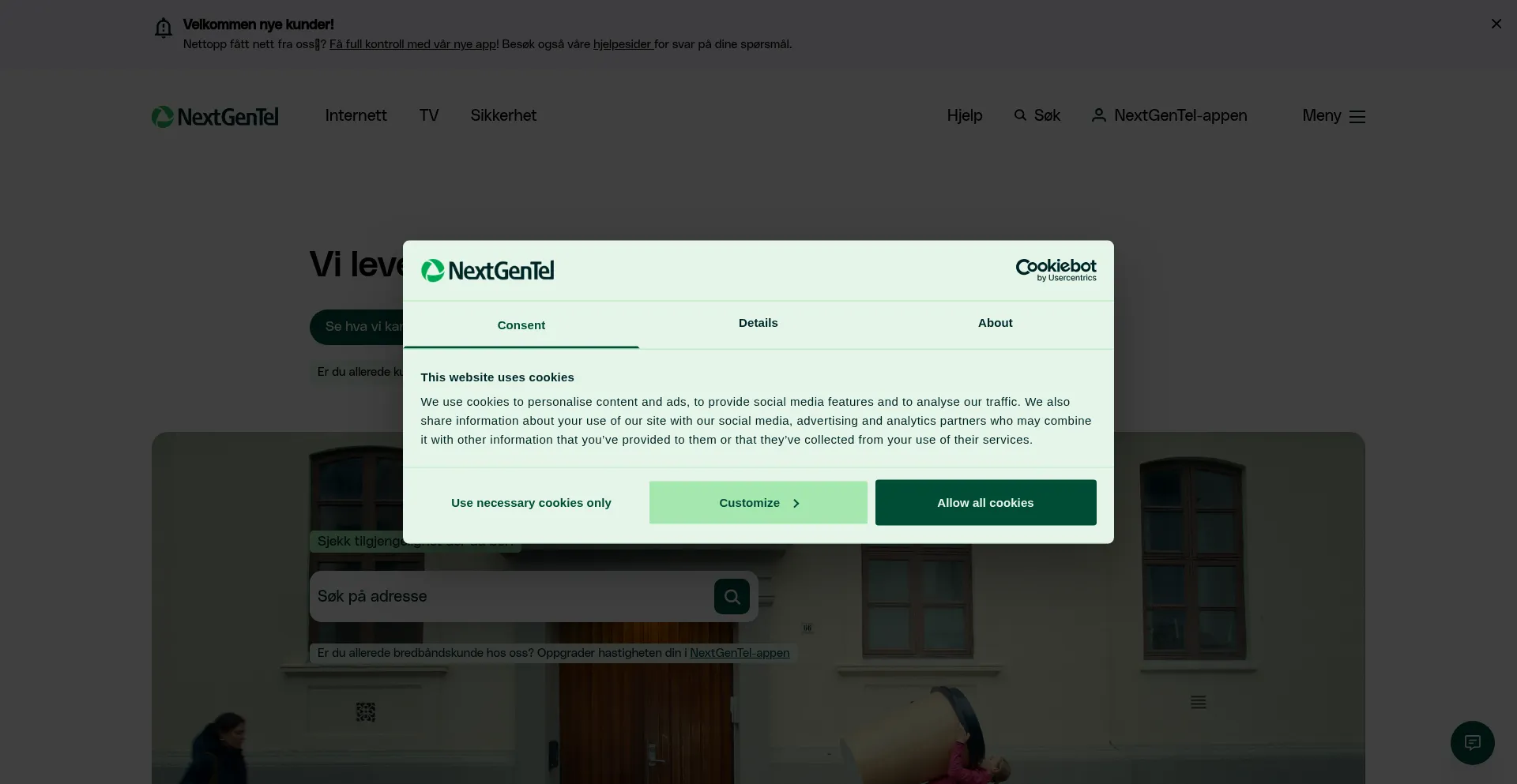 The website implements cookie consent mechanisms in compliance with privacy regulations such as GDPR or CCPA. This demonstrates that nextgentel.no adheres to data protection standards and provides users with control over personal data collection practices.