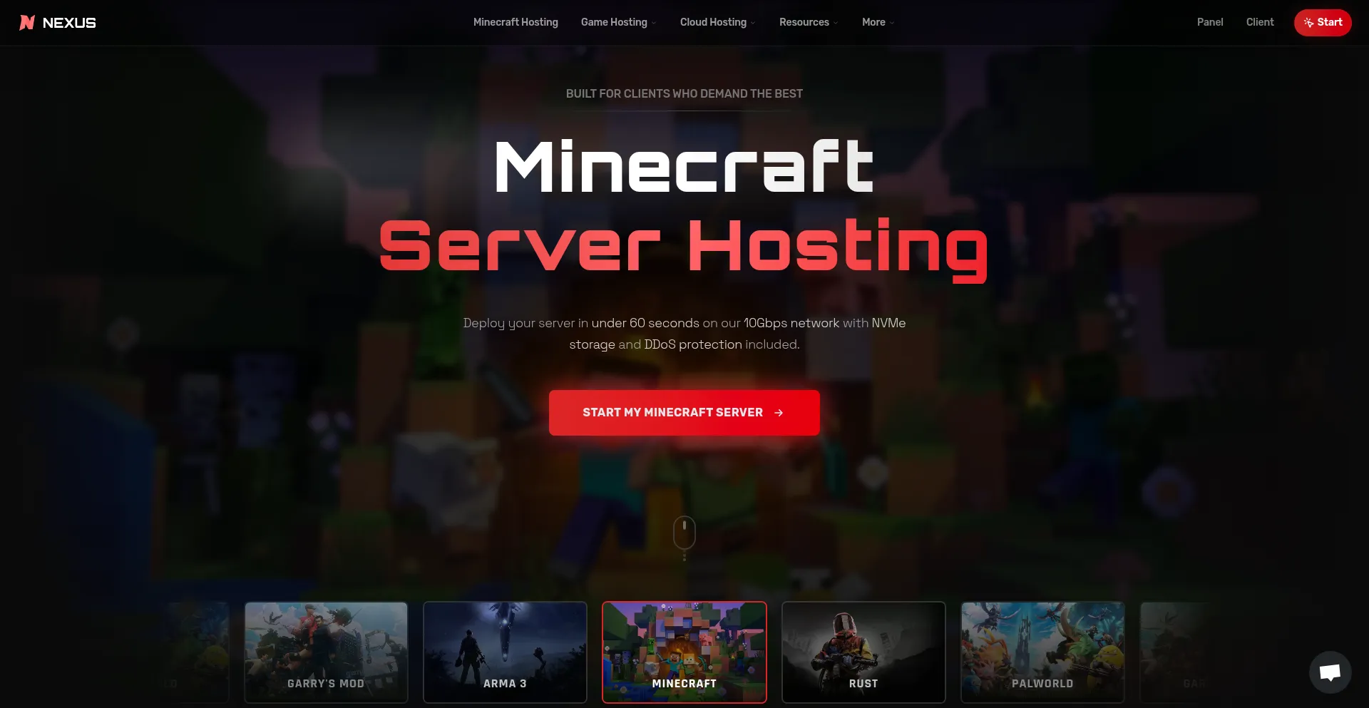 Experience next-generation game server hosting with 99.9% uptime, instant setup, and 24/7 support. Host Minecraft, Rust, ARK, and more with NEXUS Hosting - powered by cutting-ed...