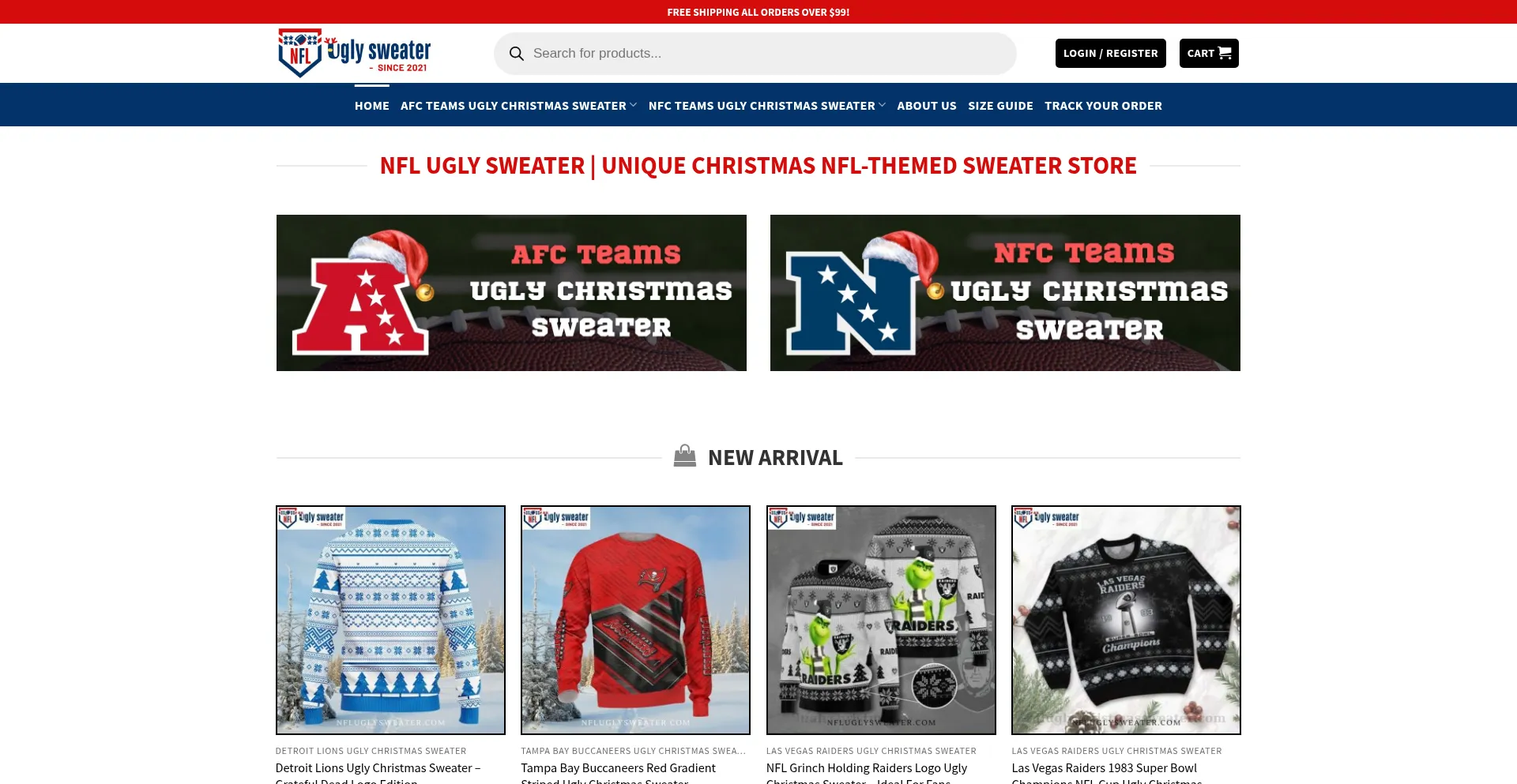 NFLUglySweater.com - Shop NFL-themed ugly Christmas sweaters for every team. Perfect holiday gifts for football fans with unique designs and unbeatable prices!
