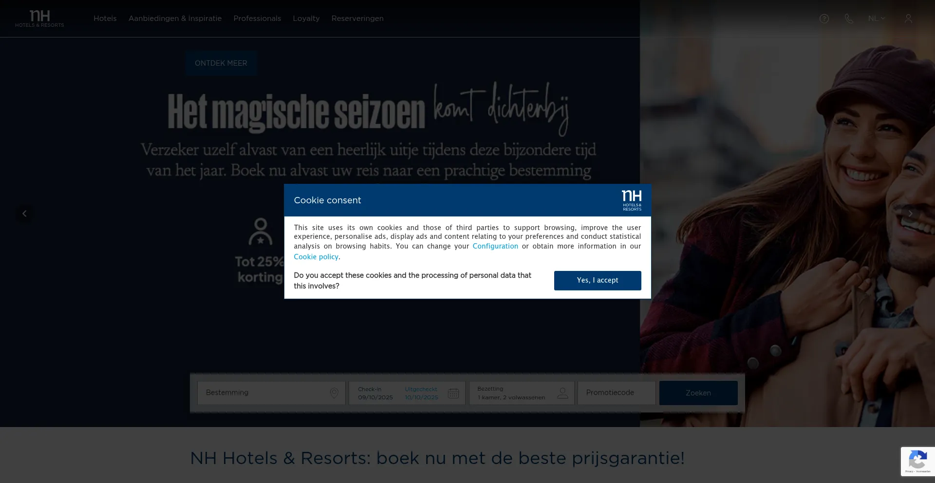 The website implements cookie consent mechanisms in compliance with privacy regulations such as GDPR or CCPA. This demonstrates that nh-hotels.nl adheres to data protection standards and provides users with control over personal data collection practices.