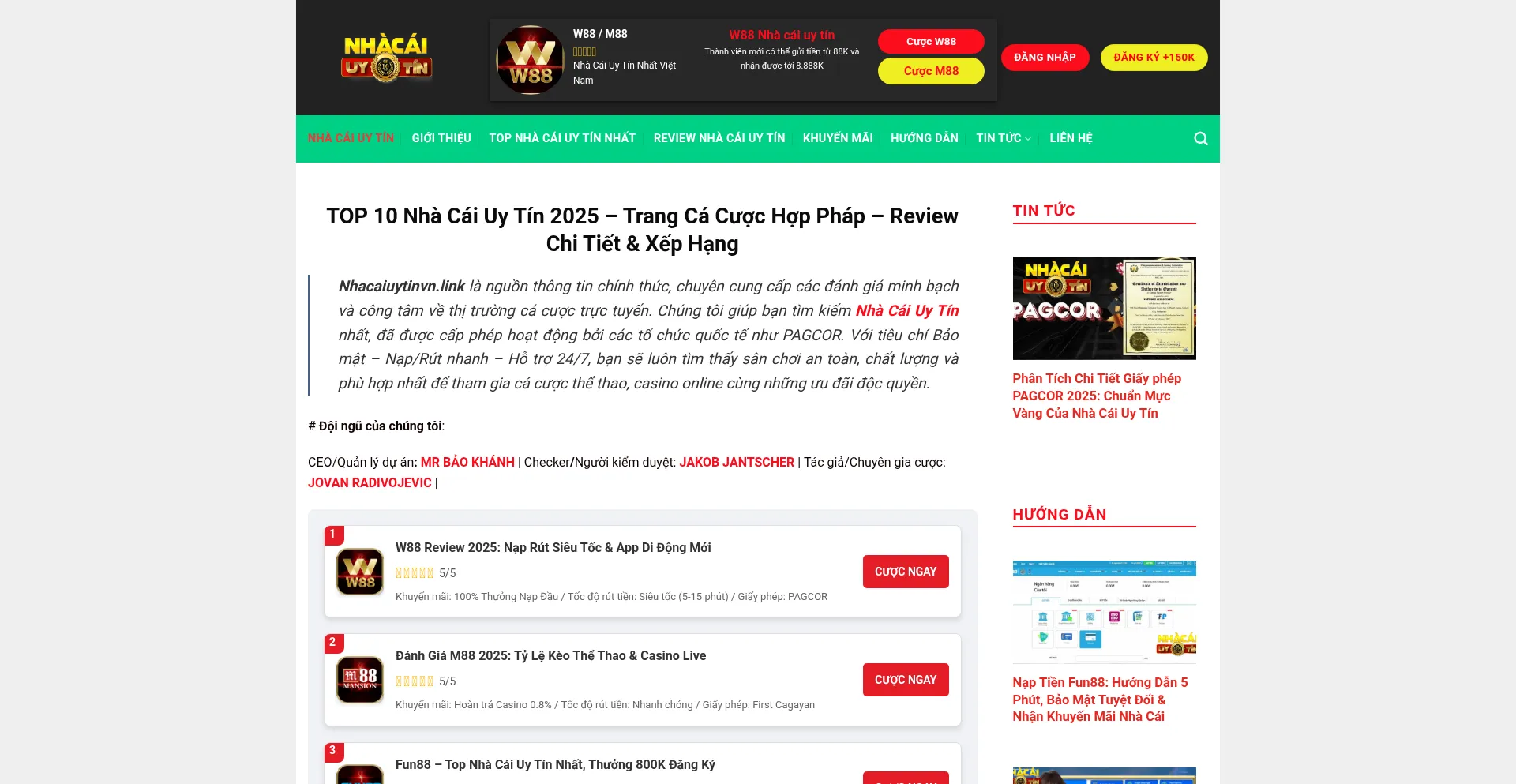 Xếp hạng TOP 10 Nhà Cái Uy Tín Nhất 2025: Đã được cấp phép, nạp/rút siêu tốc, bảo mật tuyệt đối. Nhận ngay 100K khuyến mãi Nhà Cái độc...
