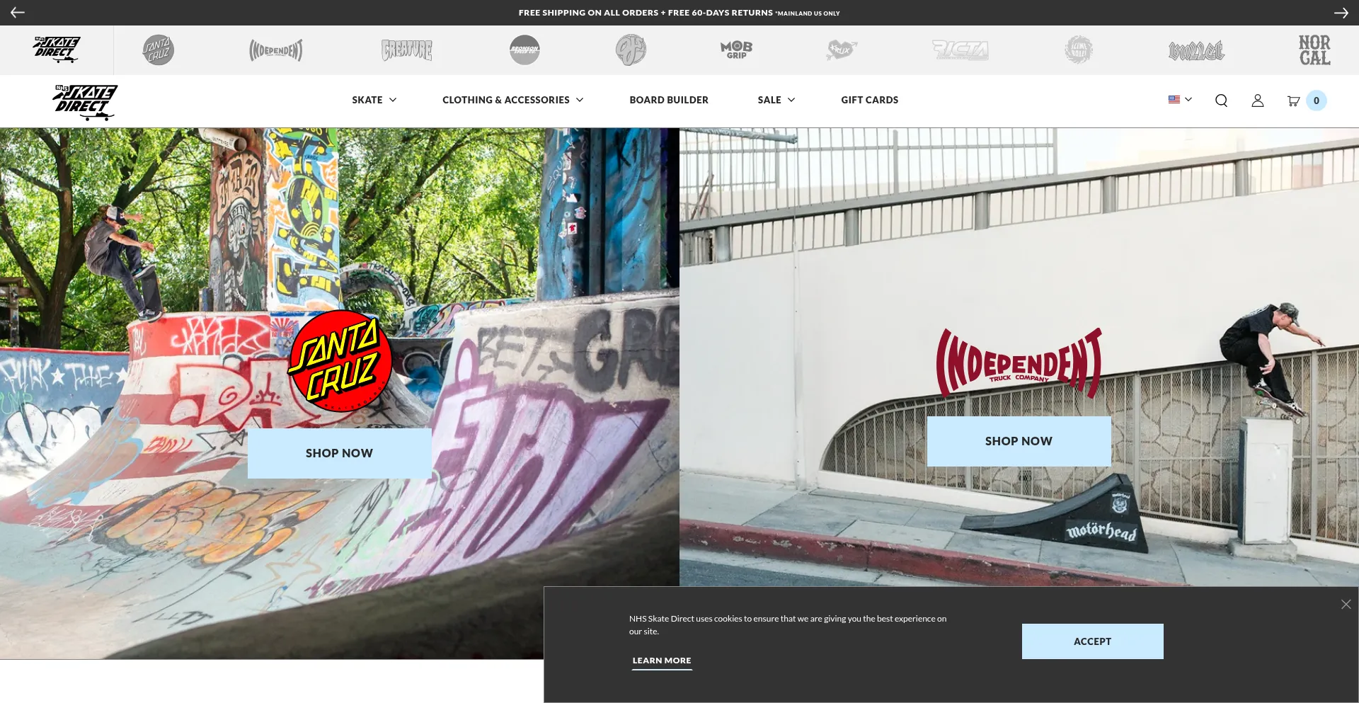 NHS Skate Direct is the official store and largest selection of Santa Cruz Skateboards, Independent Trucks, Creature Skateboards, OJ Wheels, Bronson Bearings, Ricta Wheels, OJ W...