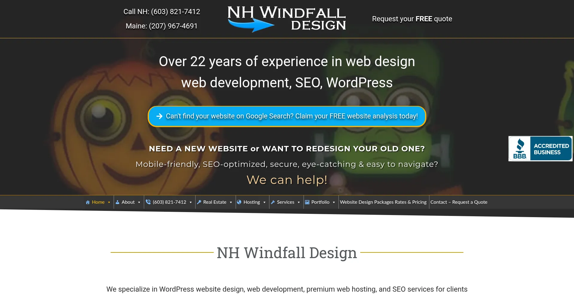 WordPress Web Development for Small Businesses, Real Estate Website Design Laconia, Meredith, NH Lakes Region, and Northern Maine. NH Windfall Design offers professional web des...