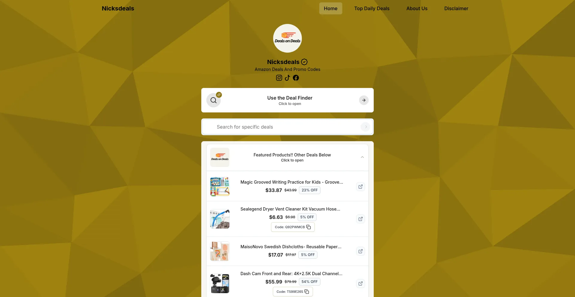 The nicksdeals.org website contains incomplete elements including placeholder content, unfinished features, or development artifacts, indicating ongoing construction or maintenance. This may reflect inadequate quality assurance processes or premature deployment, potentially affecting site reliability and user experience.