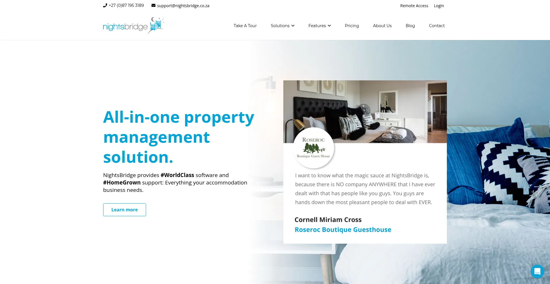 NightsBridge provides world-class software and homegrown support: Everything your accommodation business needs.