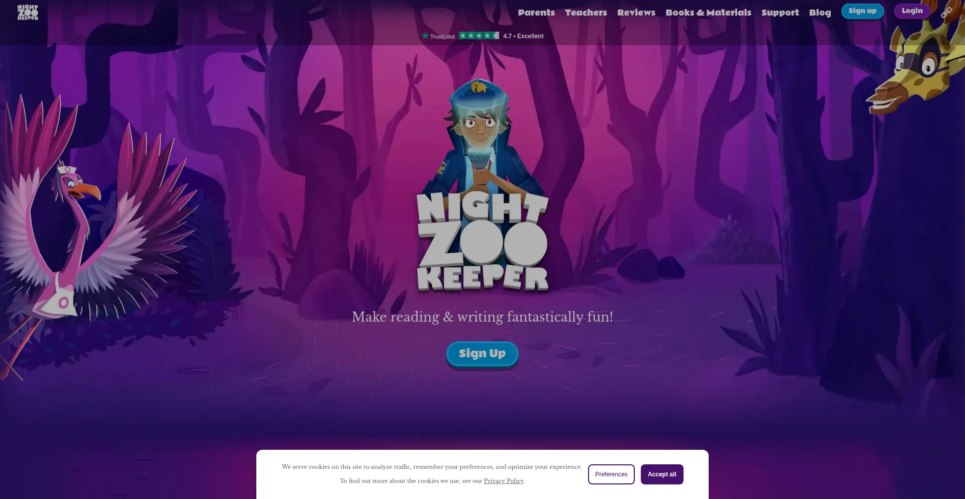 Night Zookeeper is a children's brand making learning fantastically fun and helping kids unlock their creativity. Home to the #1 reading & writing program.