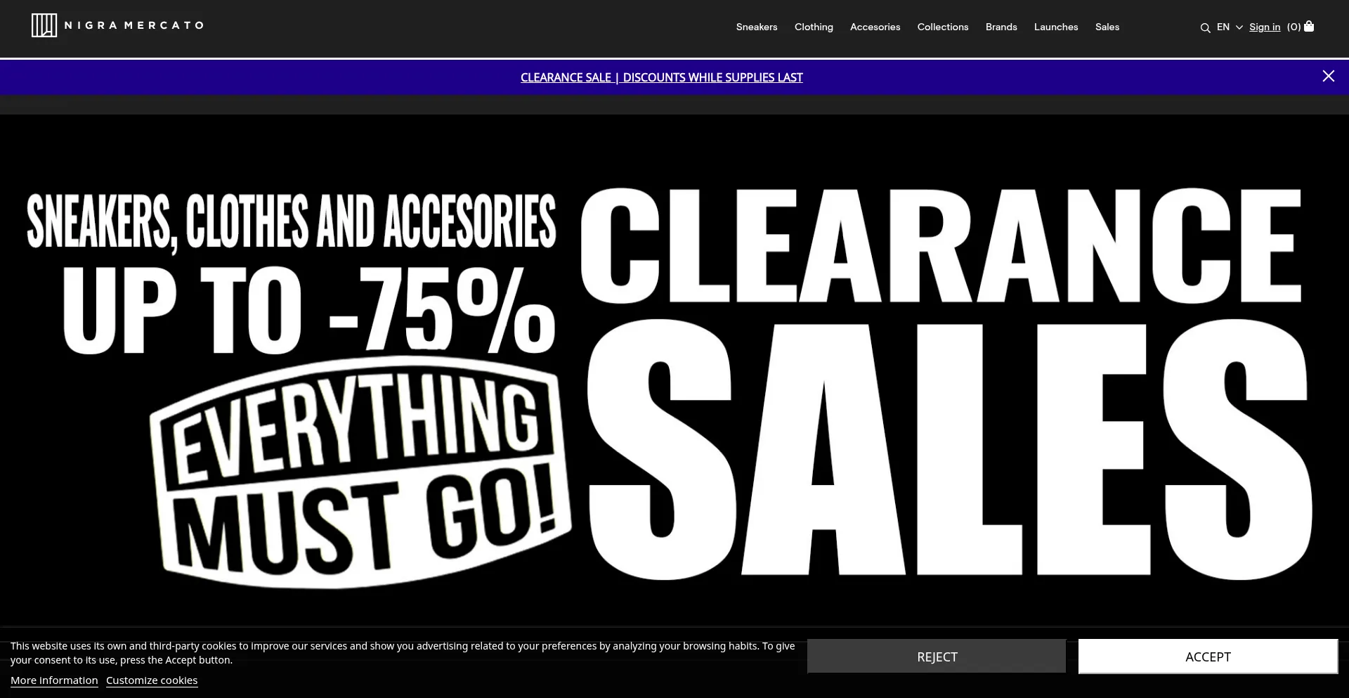 Nigra Mercato is a sneakers and apparel online store. Latest collections and limited editions from the best brands. Worldwide express shipping.