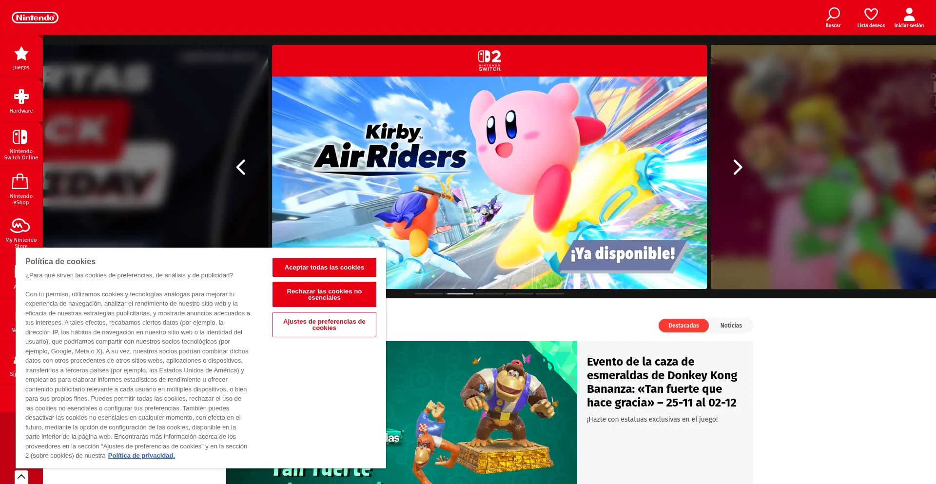 The website implements cookie consent mechanisms in compliance with privacy regulations such as GDPR or CCPA. This demonstrates that nintendo.es adheres to data protection standards and provides users with control over personal data collection practices.