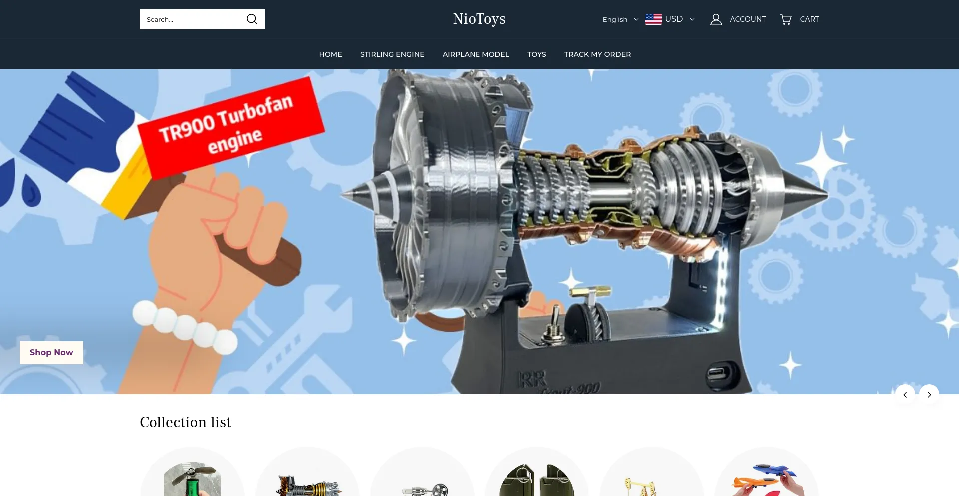 Analysis indicates that niotoys.com operates as an e-commerce platform facilitating online transactions for goods or services. The website implements shopping cart functionality, payment processing systems, and product catalog features typical of commercial retail operations.