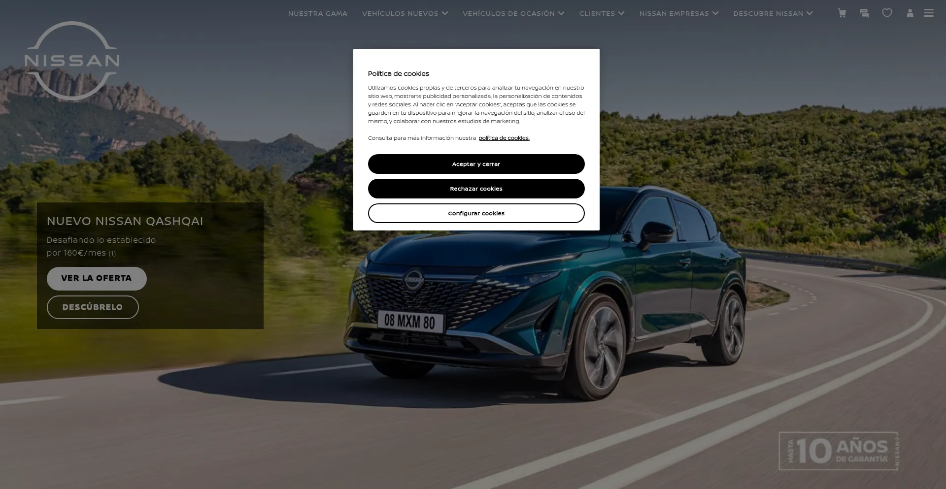 The website implements cookie consent mechanisms in compliance with privacy regulations such as GDPR or CCPA. This demonstrates that nissan.es adheres to data protection standards and provides users with control over personal data collection practices.