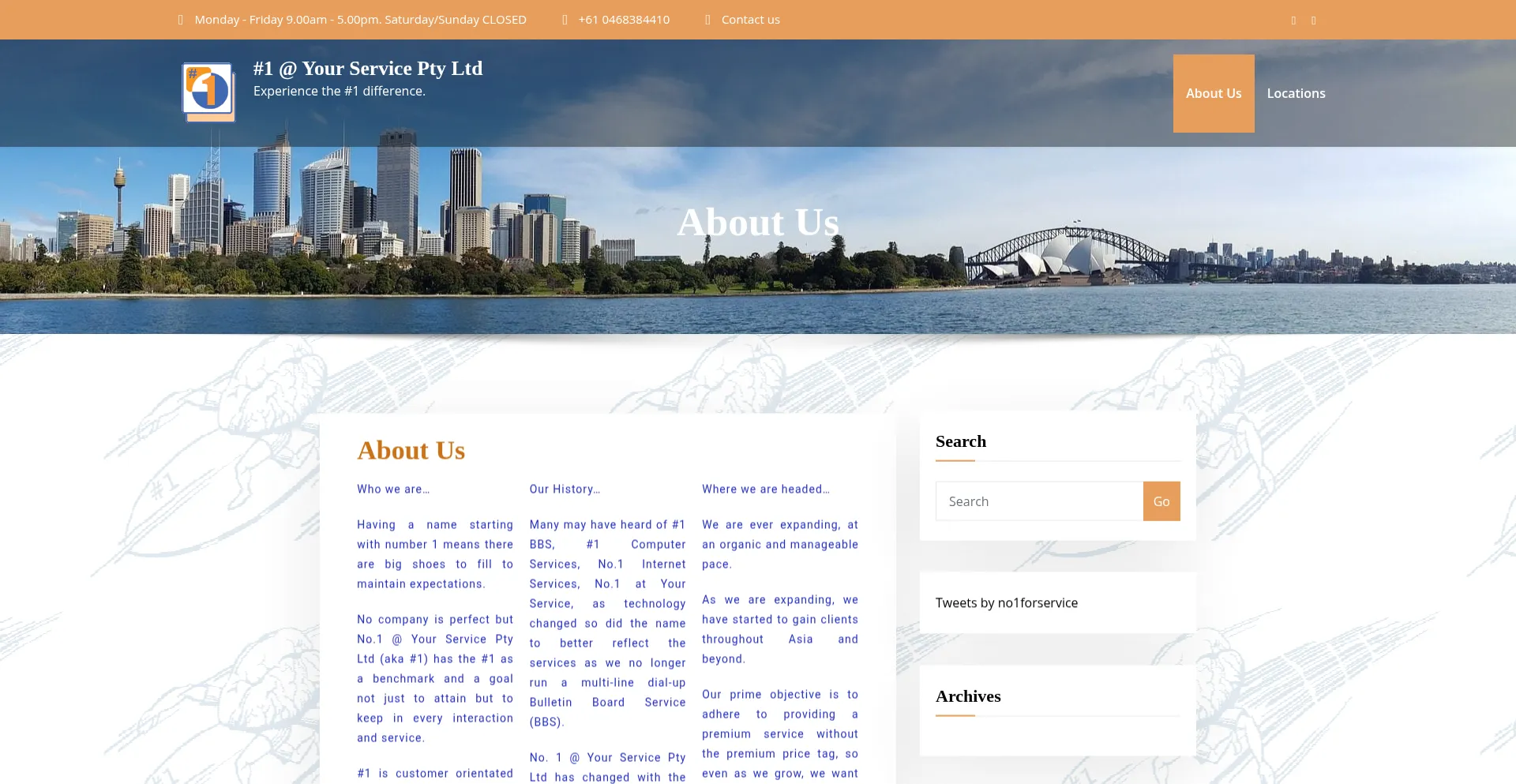 About Us Who we are…Having a name starting with number 1 means there are big shoes to fill to maintain expectations.No company is perfect but No.1 @ Your Service Pty Ltd (aka ...