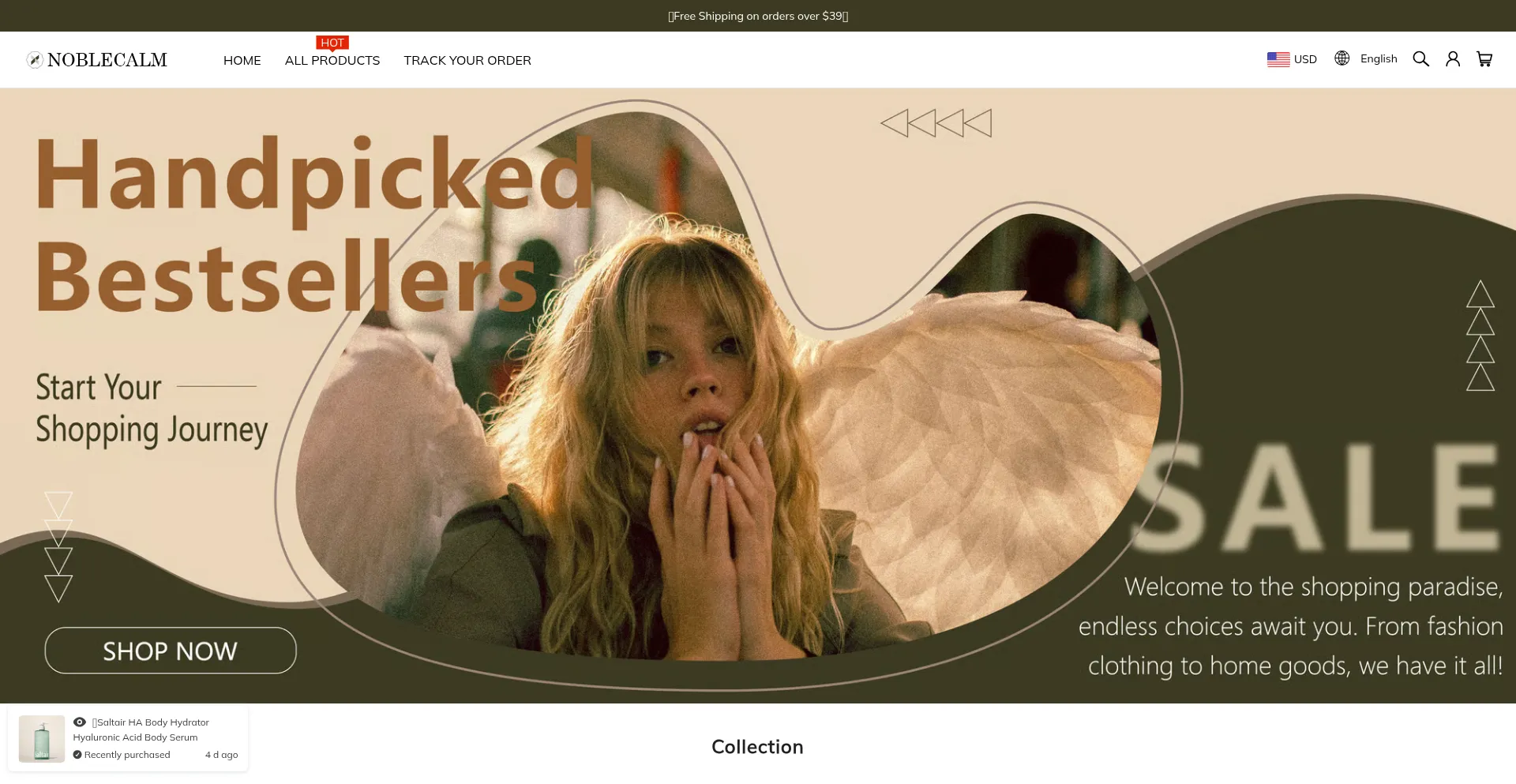 Analysis indicates that noblecalm.com operates as an e-commerce platform facilitating online transactions for goods or services. The website implements shopping cart functionality, payment processing systems, and product catalog features typical of commercial retail operations.