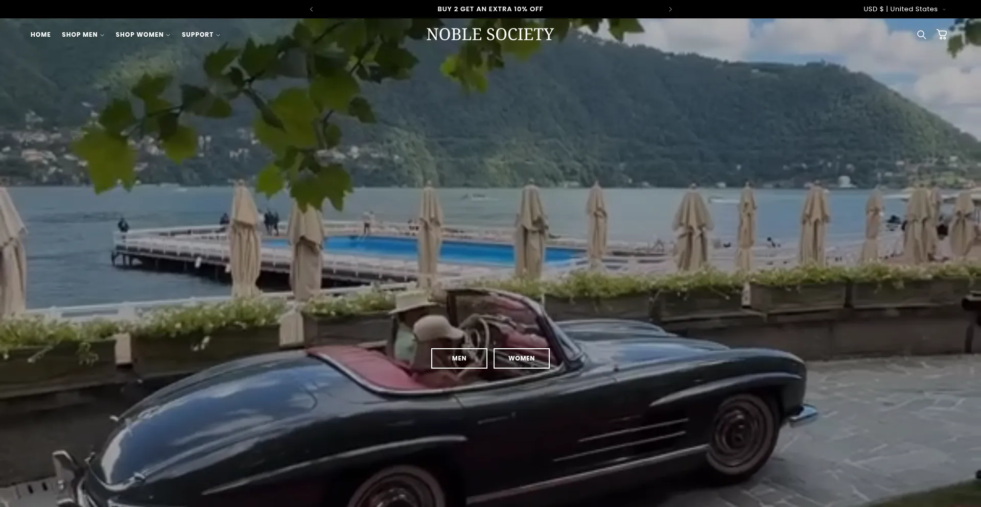 Analysis indicates that noblesocietywear.com operates as an e-commerce platform facilitating online transactions for goods or services. The website implements shopping cart functionality, payment processing systems, and product catalog features typical of commercial retail operations.