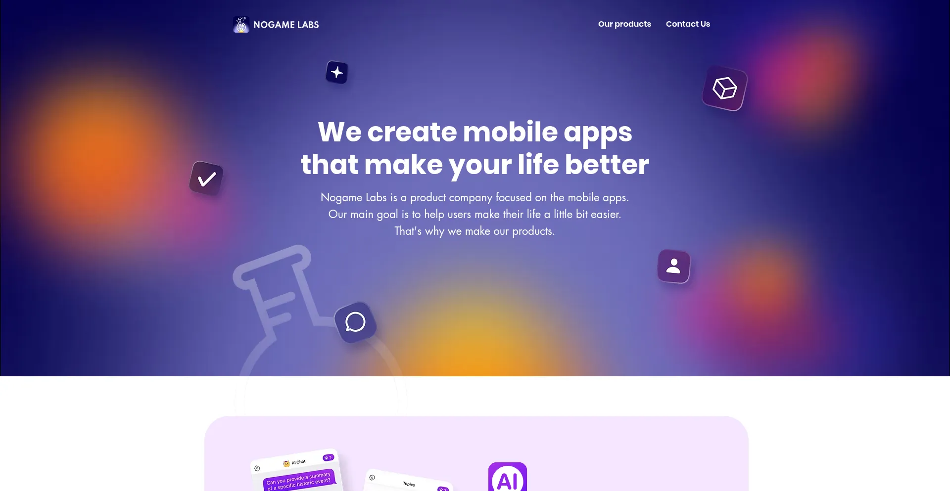 The nogamelabs.com website offers a mobile application for Android devices, indicating expanded platform presence beyond web-based services.