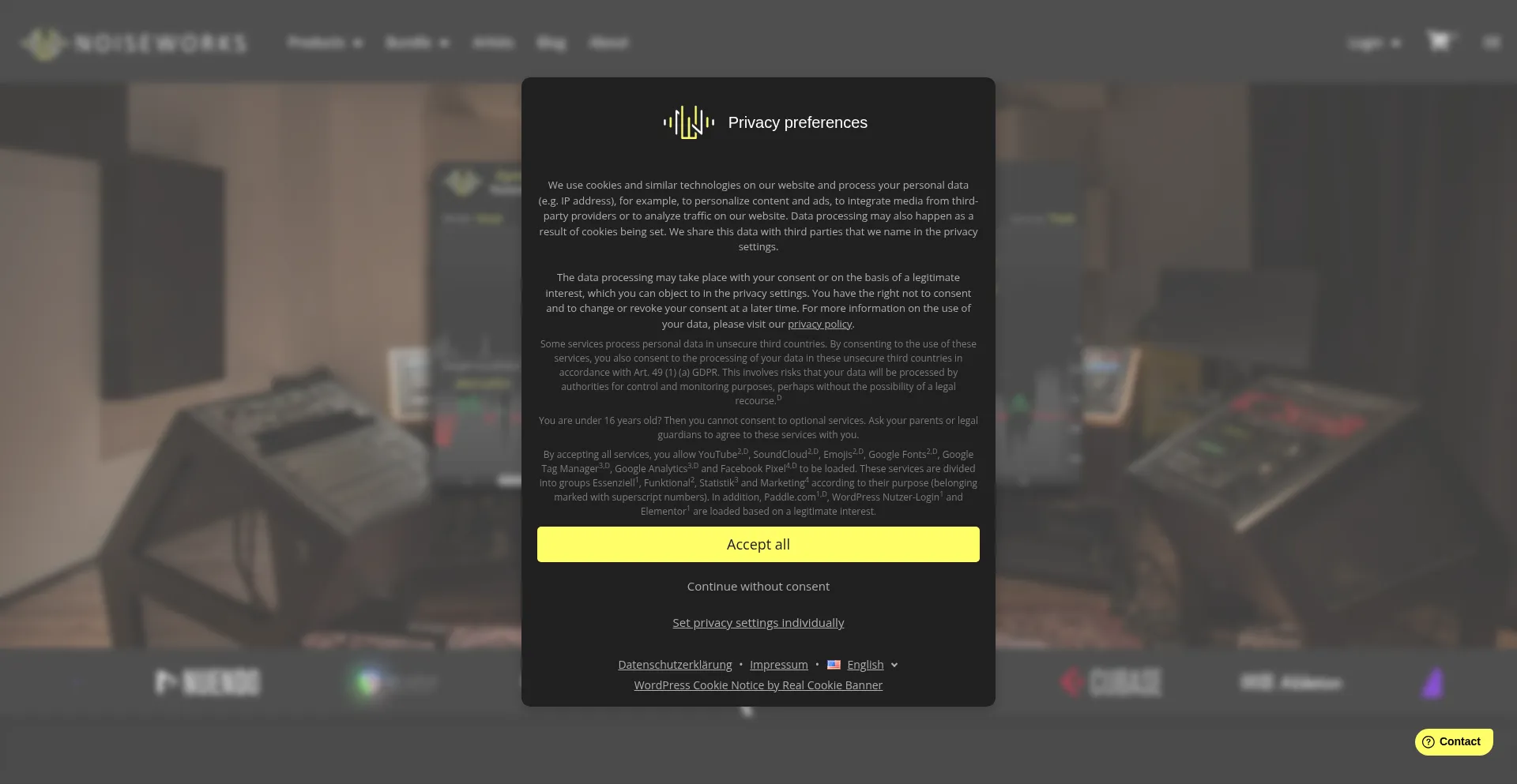 The website implements cookie consent mechanisms in compliance with privacy regulations such as GDPR or CCPA. This demonstrates that noiseworksaudio.com adheres to data protection standards and provides users with control over personal data collection practices.