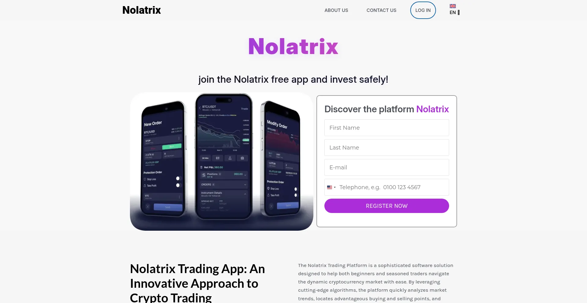 Nolatrixapp.com is a cryptocurrency scam site posing as an investment platform.