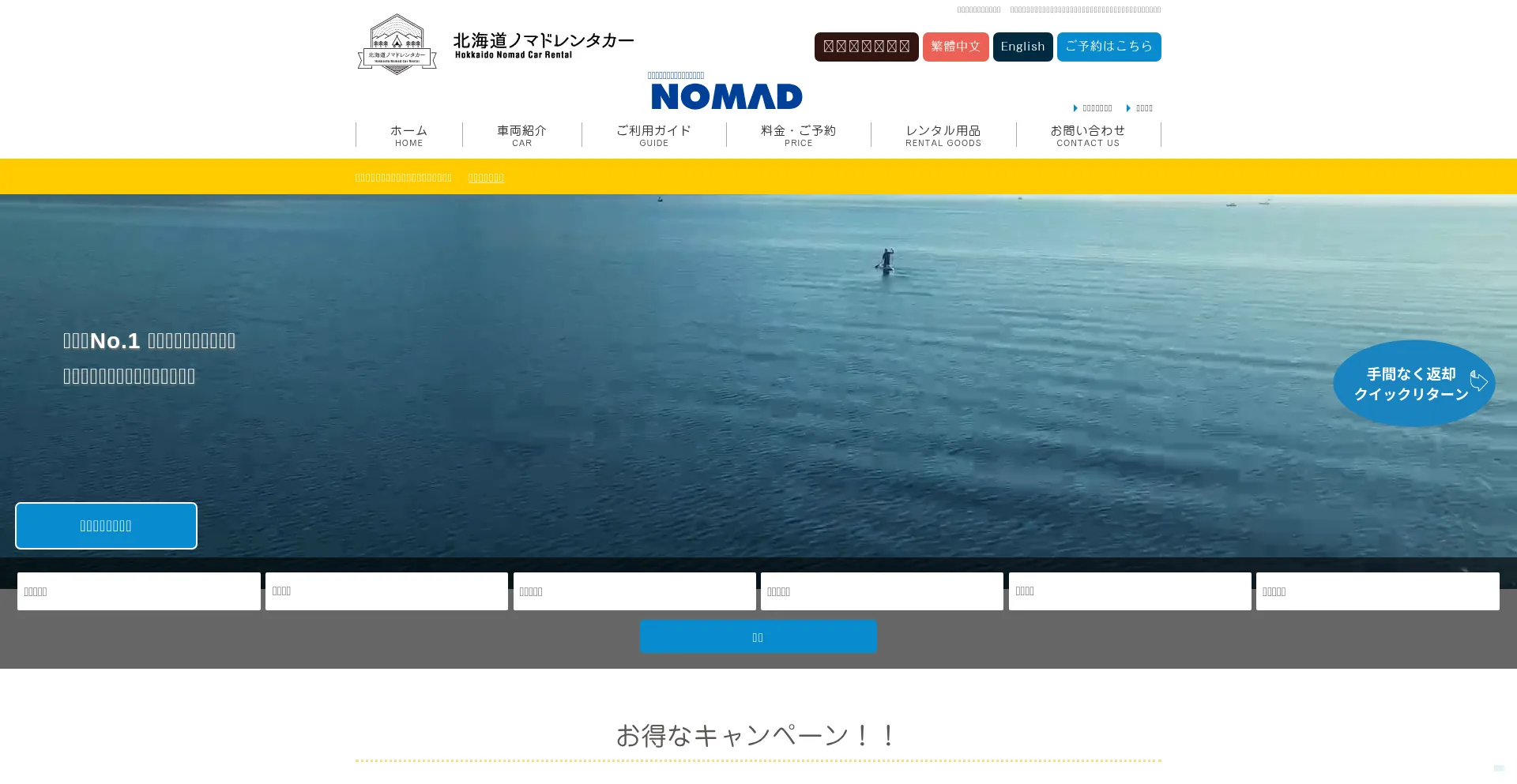 北海道ノマドレンタカー | 北海道・札幌・千歳のキャンピングカーレンタルならノマドレンタカー